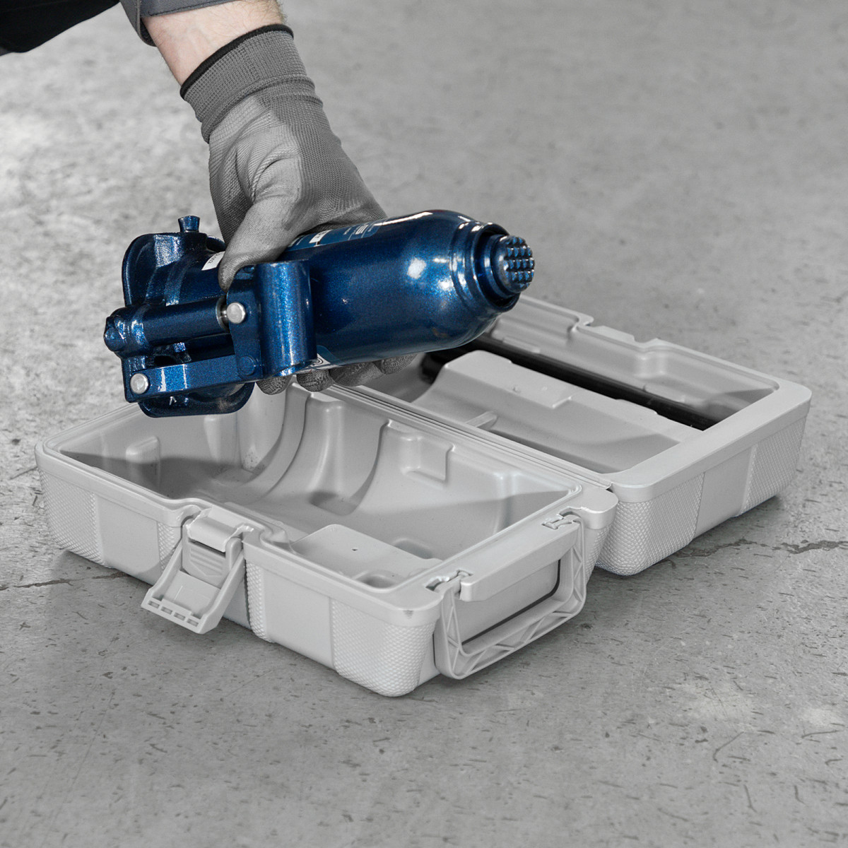 • Удобное хранение и транспортировка — домкрат поставляется в пластиковом кейсе.