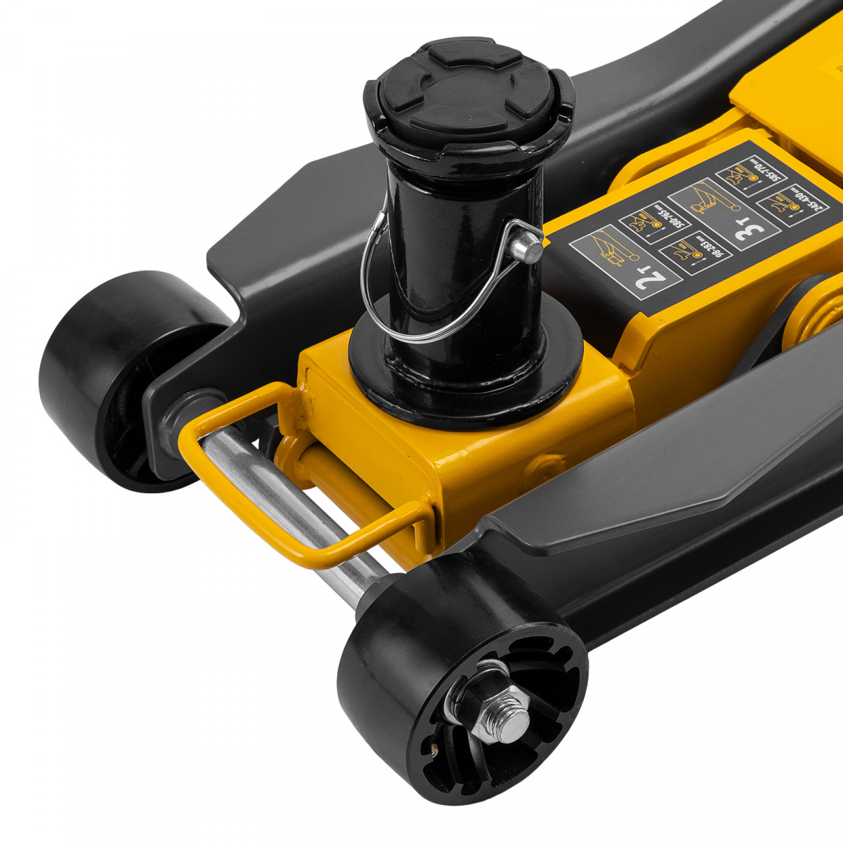 • Внимание к деталям — передние колеса домкрата имеют масленки для смазки подшипников, такое решение исключает возможность заклинивания механизма во время интенсивной работы.