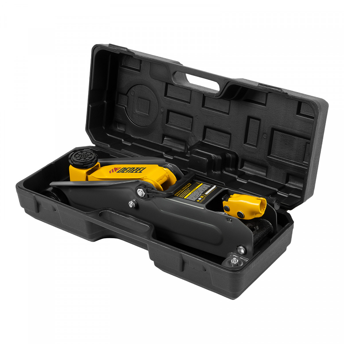 Домкрат гидравлический подкатной, 2 т, 135-385 мм, в пласт. кейсе Denzel