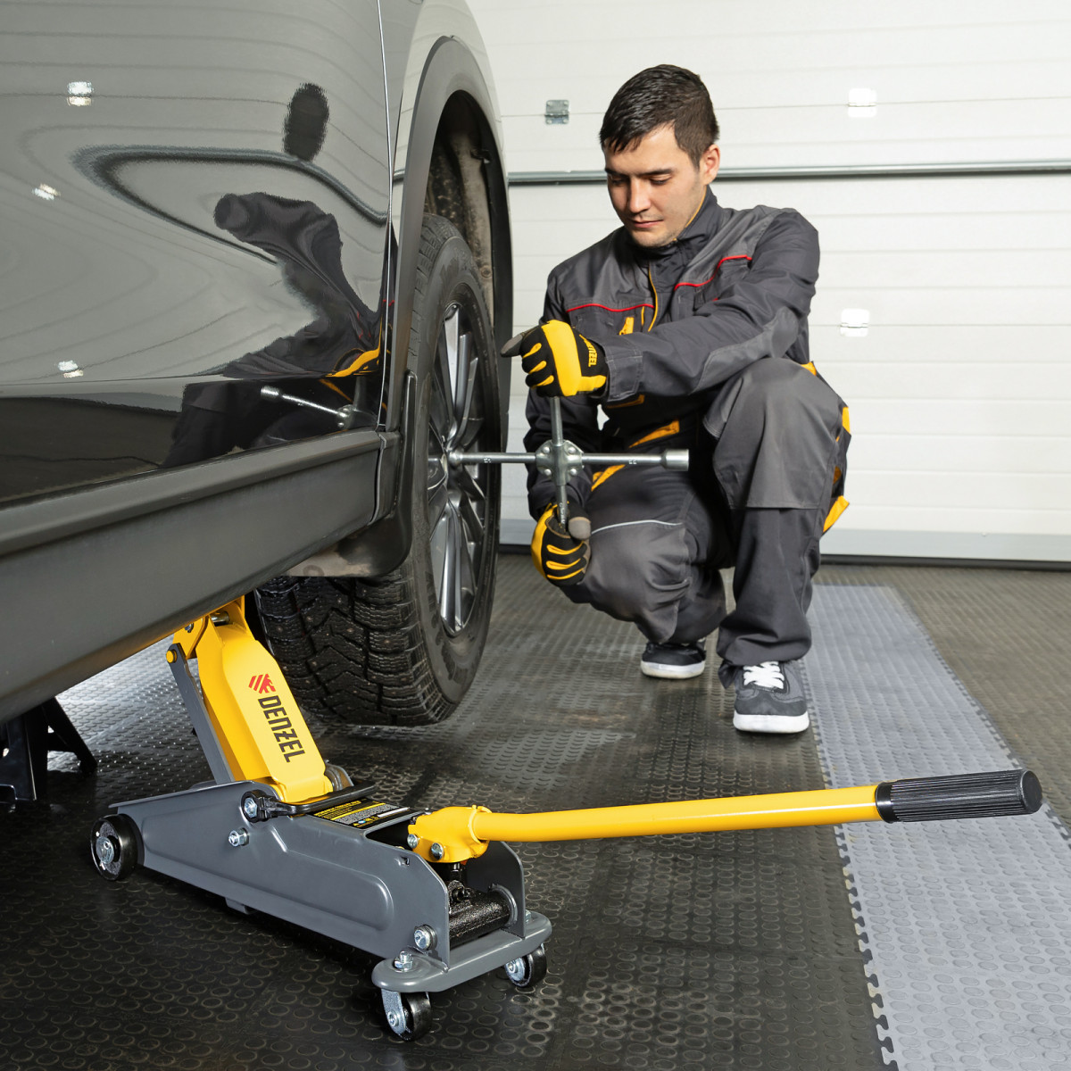 • Аккуратная работа — резиновая опора защищает днище автомобиля от нежелательных повреждений.