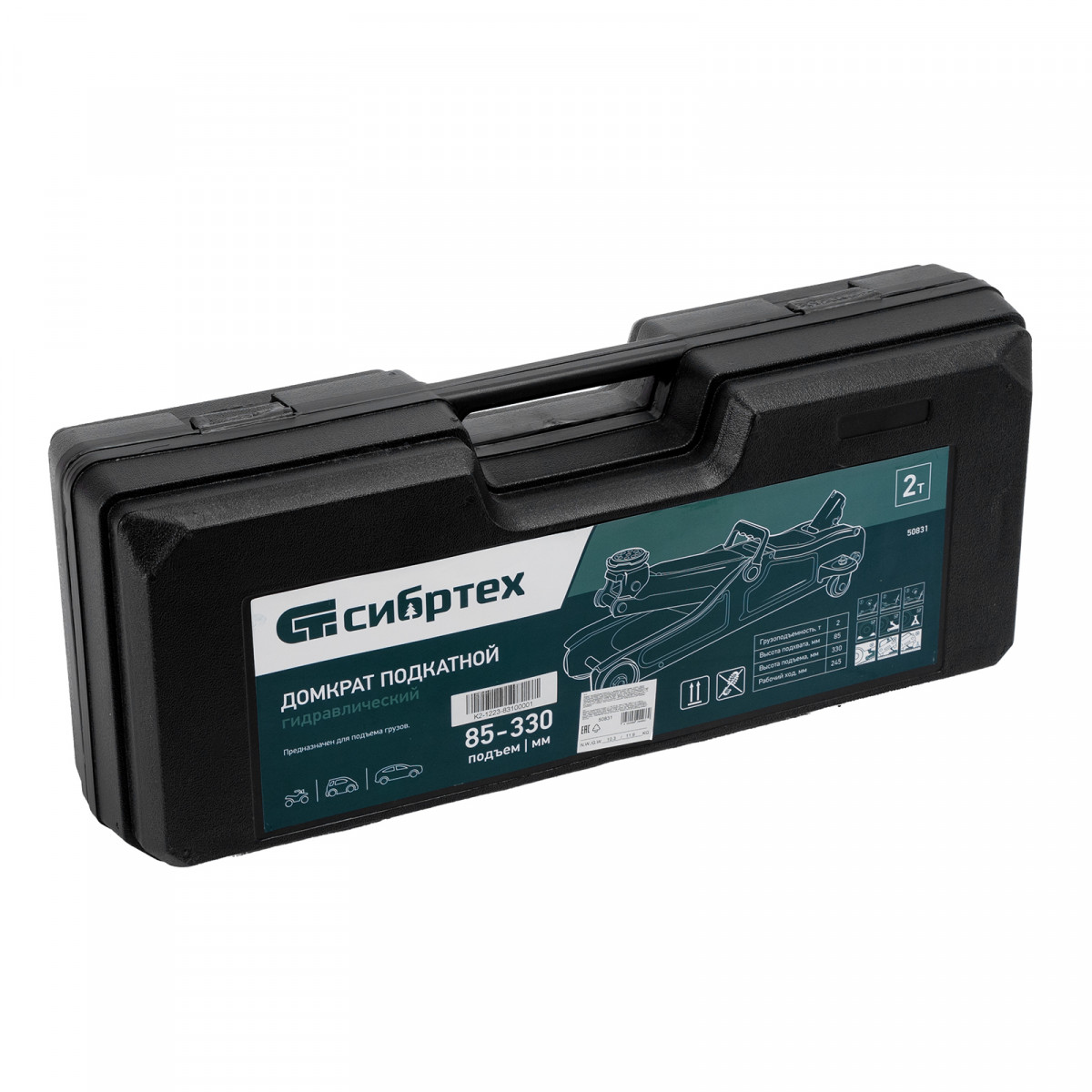 Домкрат гидравлический подкатной, 2 т, 85-330 мм, низкий подхват, в пласт. кейсе Сибртех