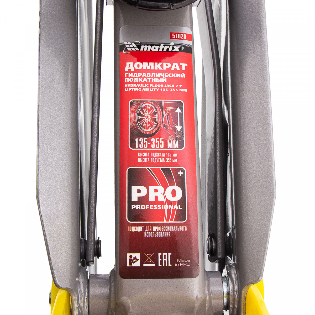 Подкатной гидравлический домкрат Matrix 51020 с высотой подхвата 135 мм, — полупрофессиональное гаражное оборудование, способное поднимать груз массой до 2 т на высоту до 355 мм. Высота подхвата 135 мм позволяет использовать домкрат для автомашин со стандартным клиренсом. Домкрат будет полезен как в автомастерской, так и в частном гараже.