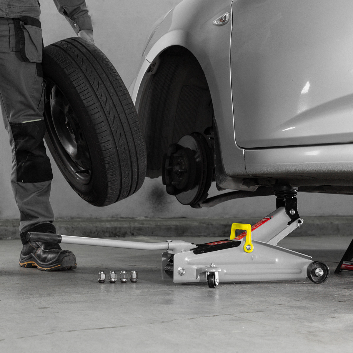 - Безопасная эксплуатация — предохранительный клапан препятствует подъему груза массой более 2 т, предотвращая поломку домкрата.