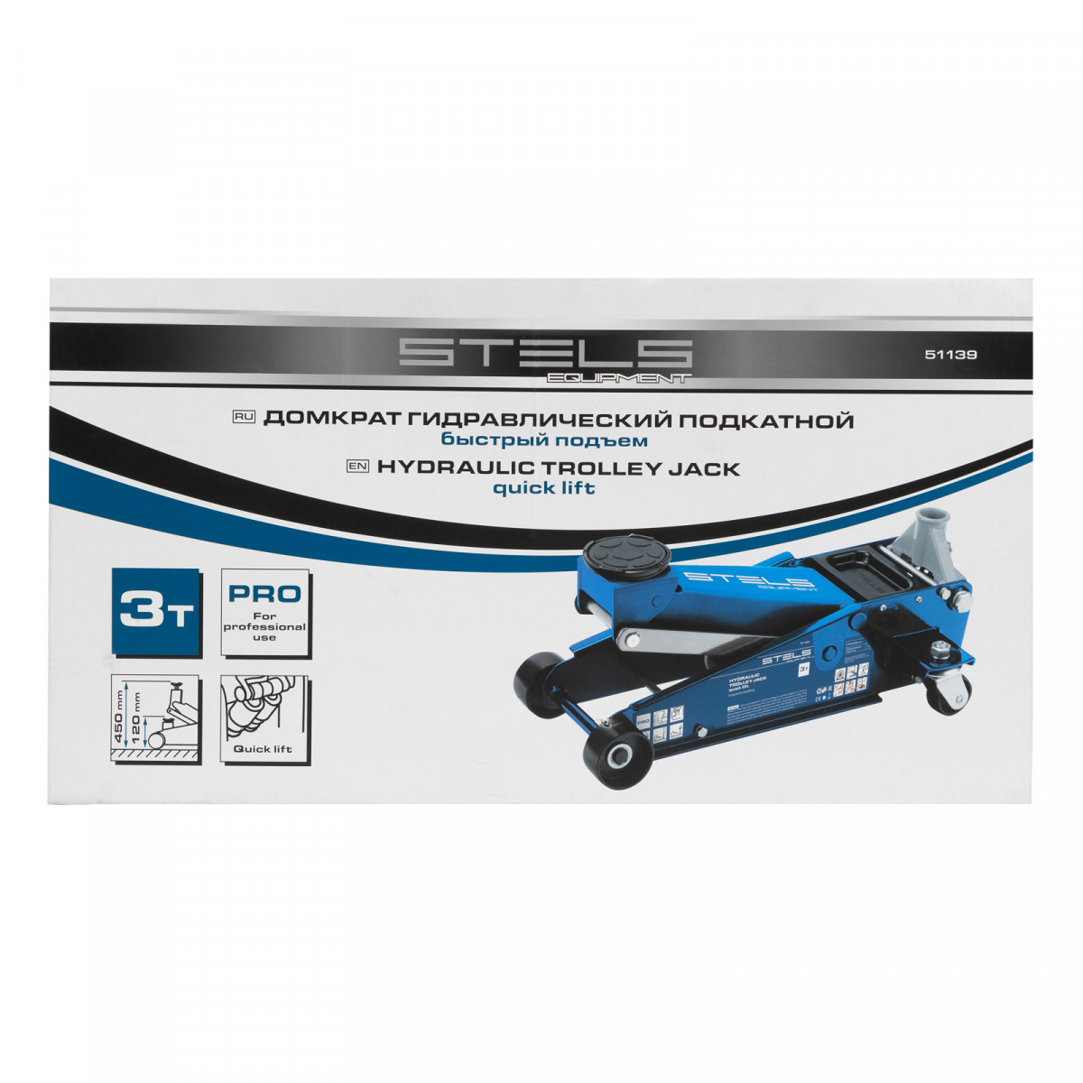 Профессиональный подкатной гидравлический домкрат Stels 51139 используется для быстрого подъема на высоту 120-450 мм всех типов автомобилей со стандартным клиренсом и массой до 3 тонн. Благодаря системе быстрого подъема QUICK LIFT для достижения предельной высоты достаточно 6 качков рукоятки. Домкрат подходит для использования на станциях техобслуживания и шиномонтажа.