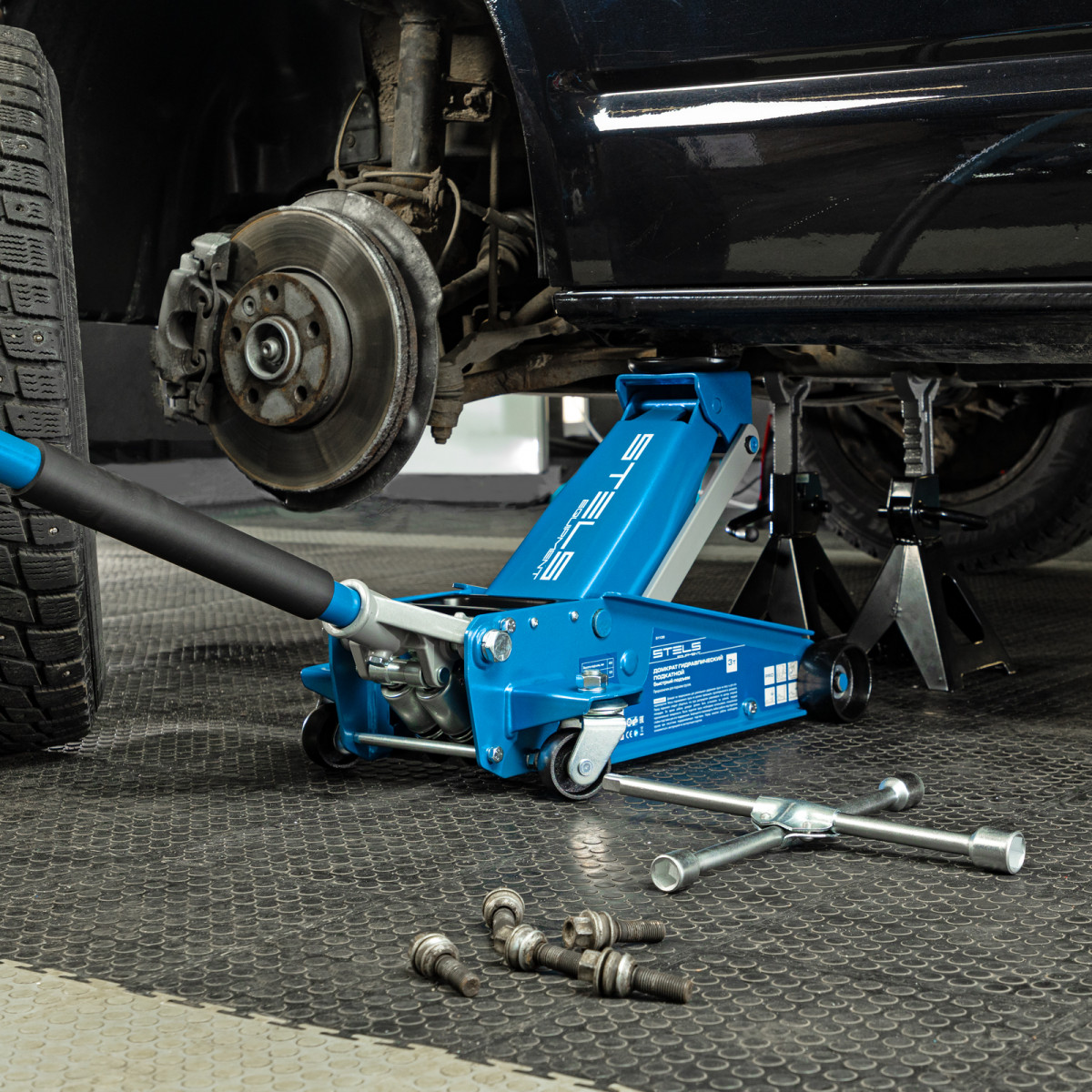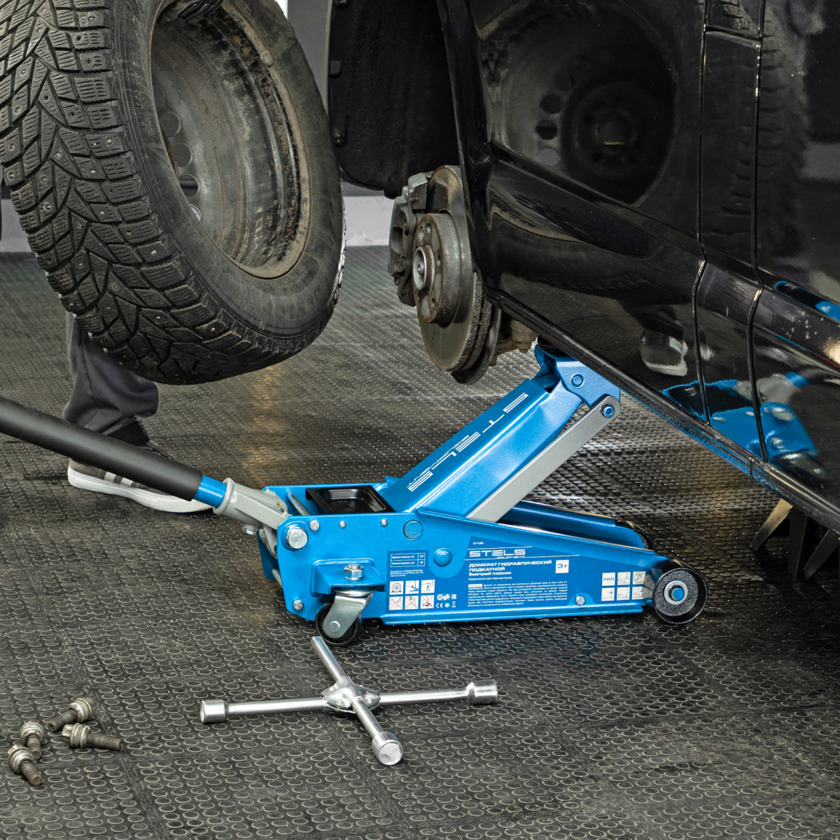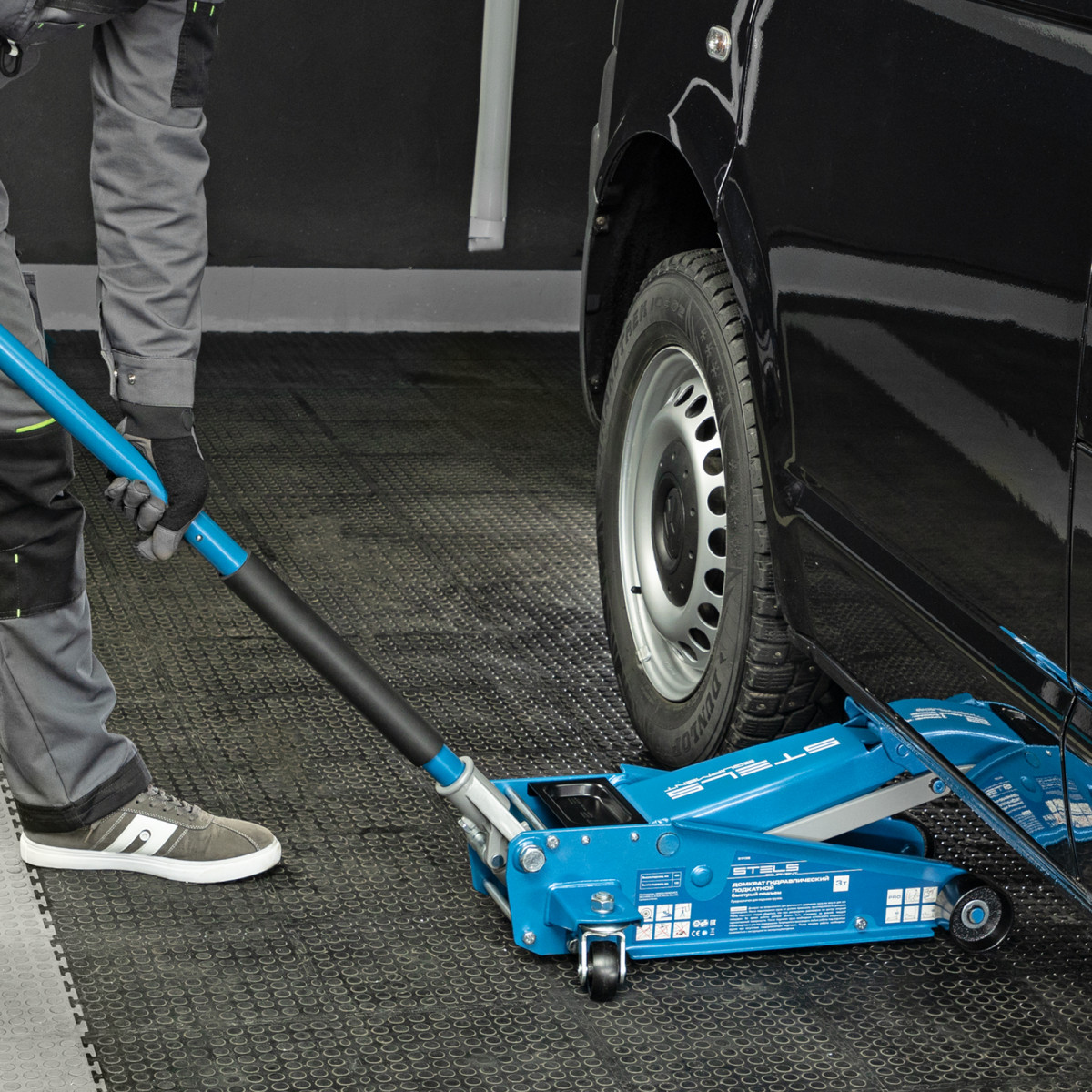 • Аккуратная работа — резиновая опора и прорезиненная рукоятка защищают кузов и днище автомобиля от повреждений.