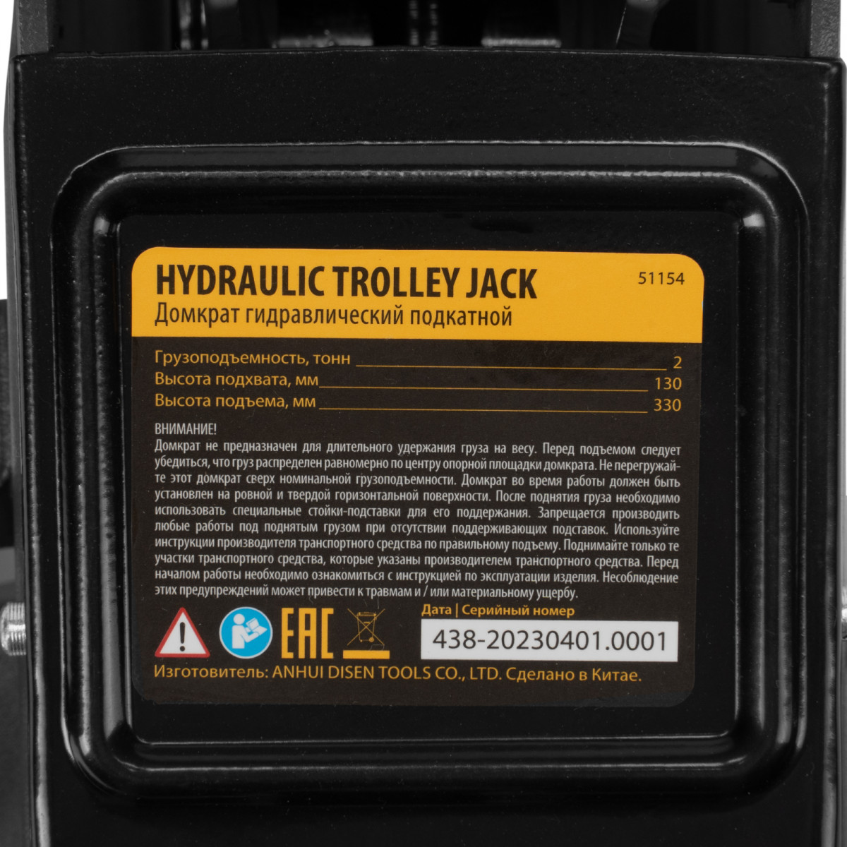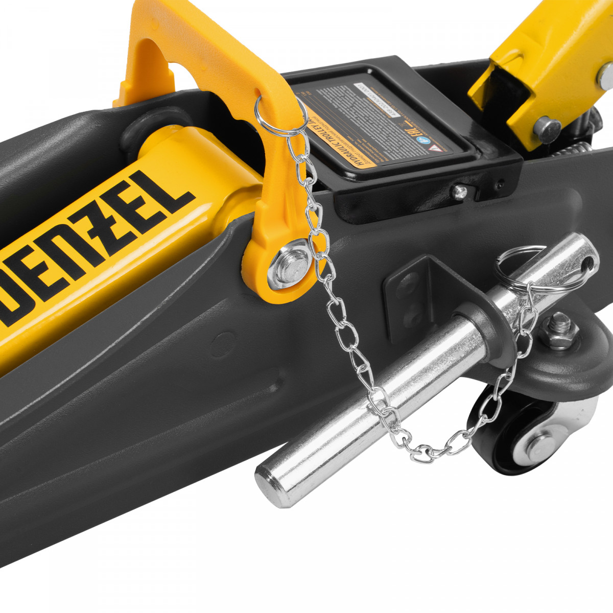Домкрат гидравлический подкатной с фиксатором, 2 т, 130-330 мм, в кейсе Denzel
