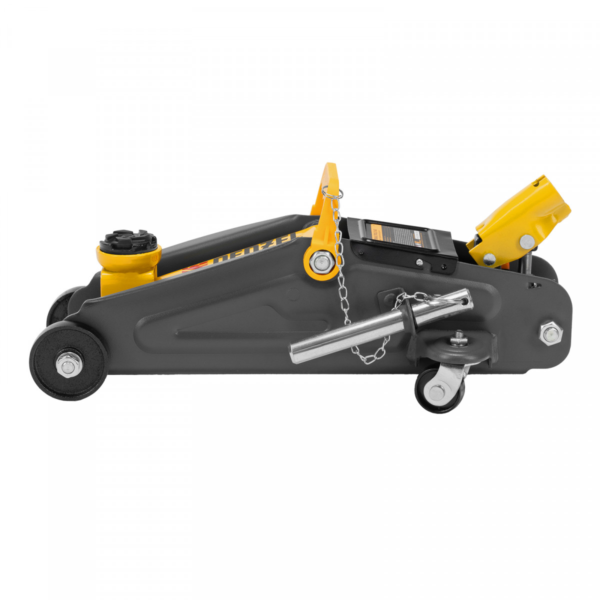 Гидравлический подкатной домкрат с фиксатором Denzel 51154, с высотой подхвата 130 мм, предназначен для плавного подъема грузов массой до 2 т на высоту до 330 мм. Страховочный штифт позволяет фиксировать подъемный рычаг на высоте 260 и 300 мм для безопасной работы. Домкрат пригодится владельцам легковых автомобилей со стандартным клиренсом.
