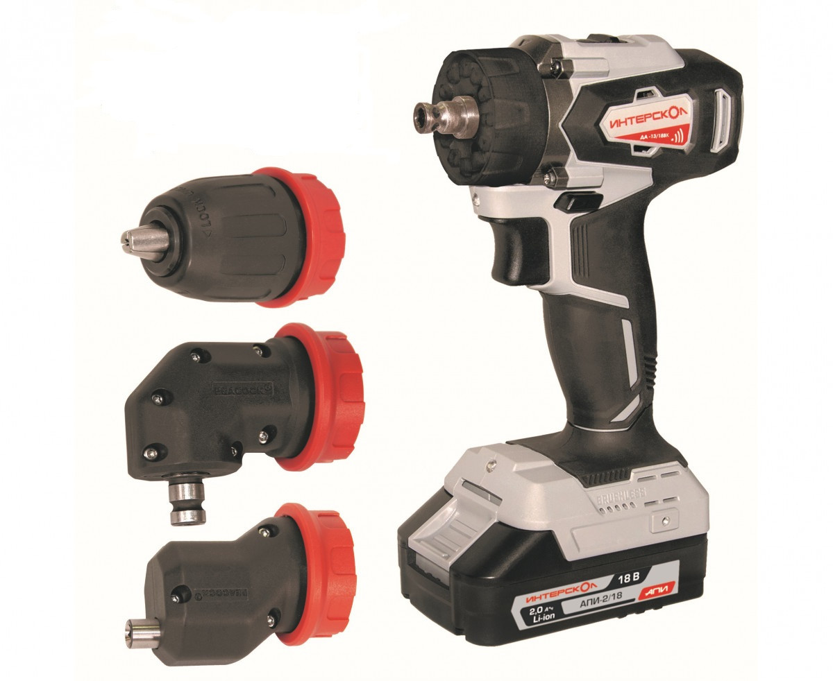 Дрель шуруповерт аккумуляторная Интерскол ДА-13/18ВК комби 3 насадки