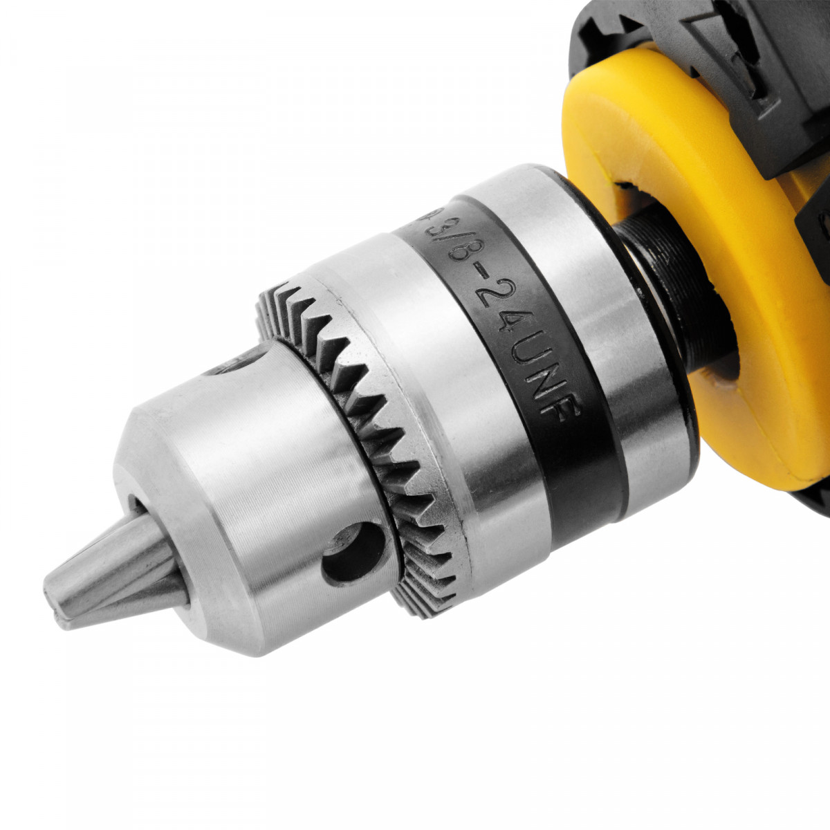 • Комфортная работа — обрезиненная боковая рукоятка не выскальзывает из руки, дрель весит 1,7 кг, что позволяет долго работать без ощущения усталости.