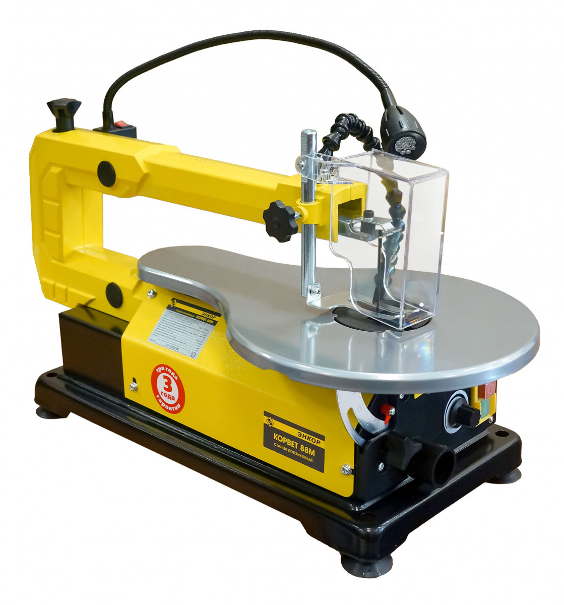 Электрический лобзик Энкор Корвет-88М основное назначение настольного лобзика — это выпиливание различных декоративных элементов из деревянных заготовок, а также их распиловка по прямым, поперечным, наклонным и продольным направлениям.