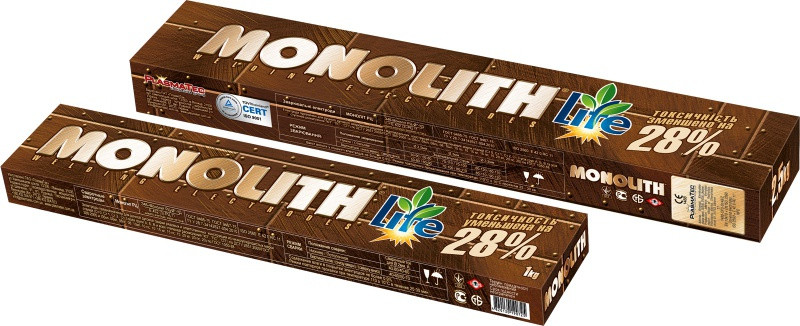 Электроды "Монолит"отличаются от аналогичных товаров других производителей уменьшенной величиной выделений и интенсивностью образования сварочного аэрозоля и марганца при сварке металла (выделение марганца снижено более чем на 30%, вредных веществ в сварочном аэрозоле более 28%). Это было достигнуто путем подбора высококачественного сырья и высоким уровнем контроля технических процессов при производстве электродов.