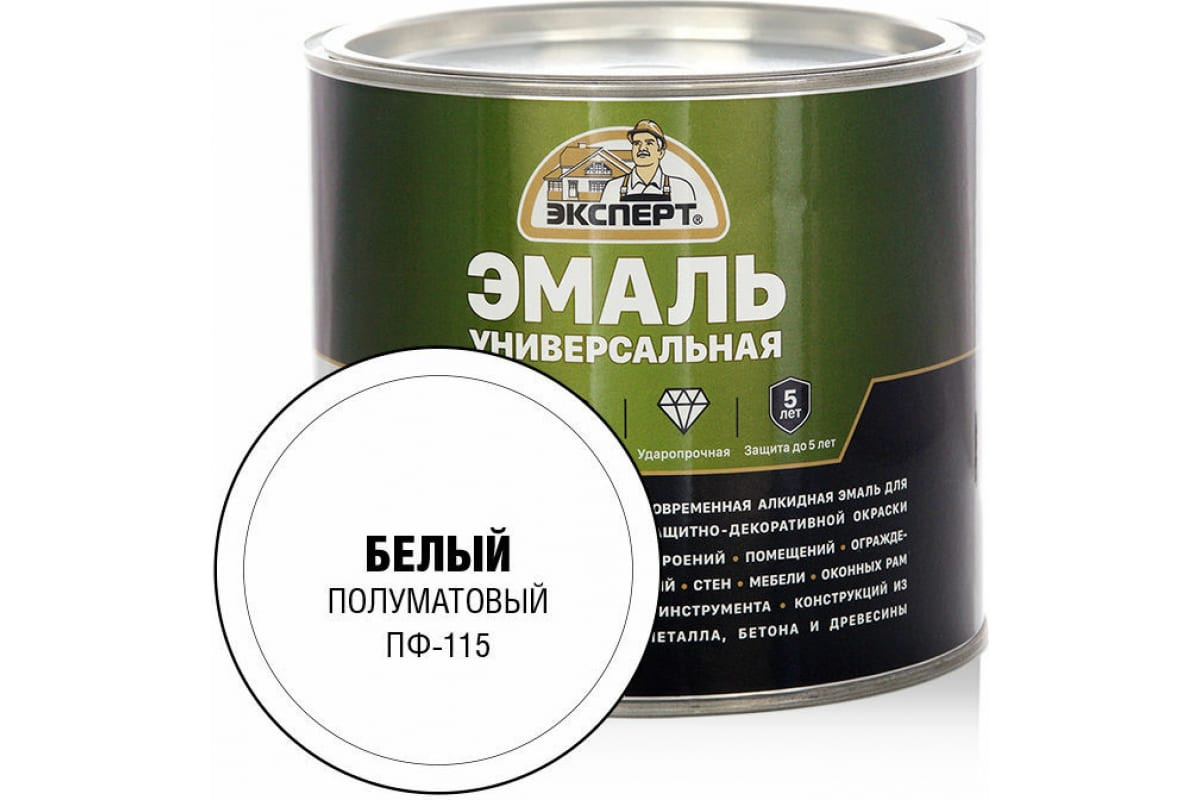 Эмаль ПФ-115 универсальная алкидная ЭКСПЕРТ полуматовая белая 1,8кг