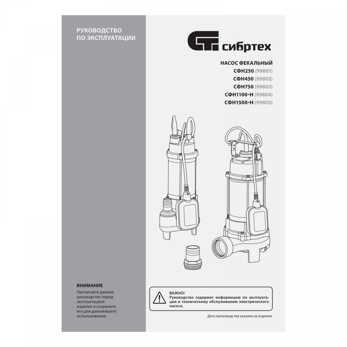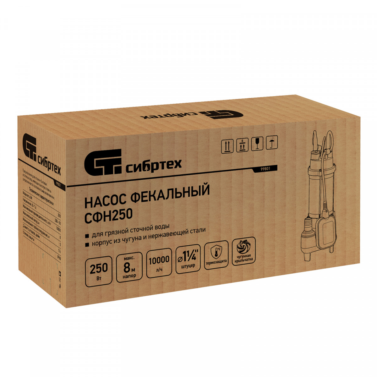 Фекальный насос СФН250, 250 Вт, напор 8 м, 10000 л/ч Сибртех