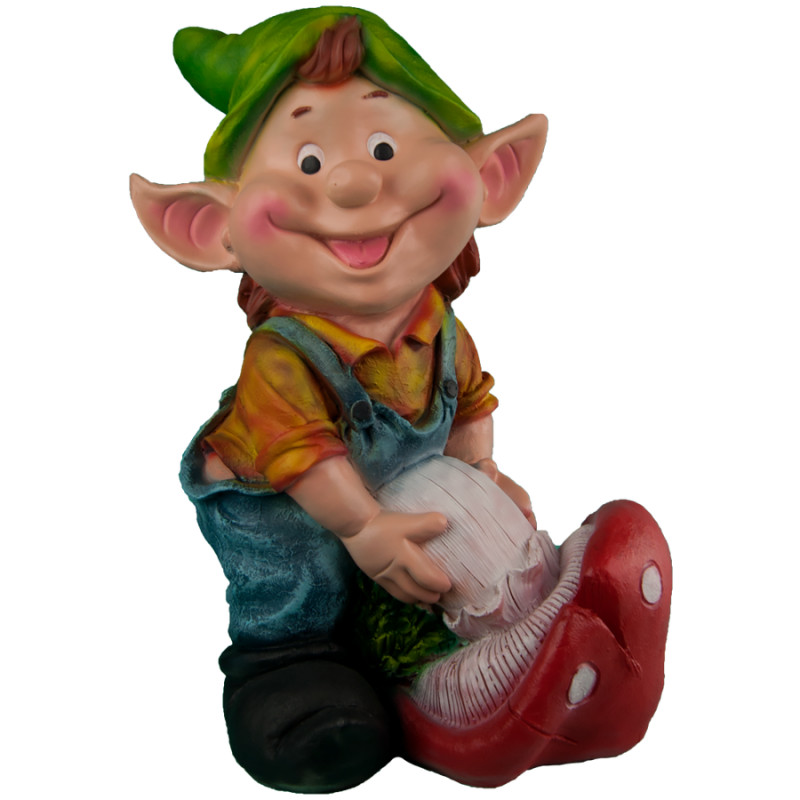 Фигура садовая Гномик мальчик тащит гриб