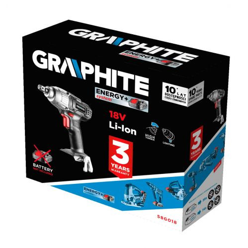 Аккумуляторный гайковерт GRAPHITE Energy+ 58G018 предназначен для монтажа резьбовых соединений.