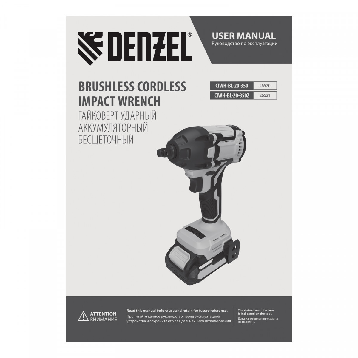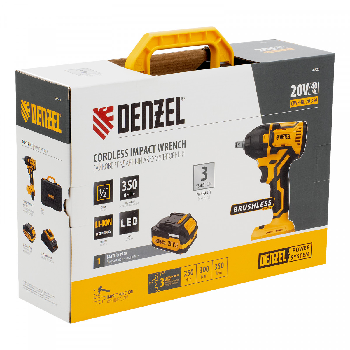 Гайковерт ударный аккумуляторный бесщет. CIWH-BL-20-350, Li-Ion, 20 В// Denzel
