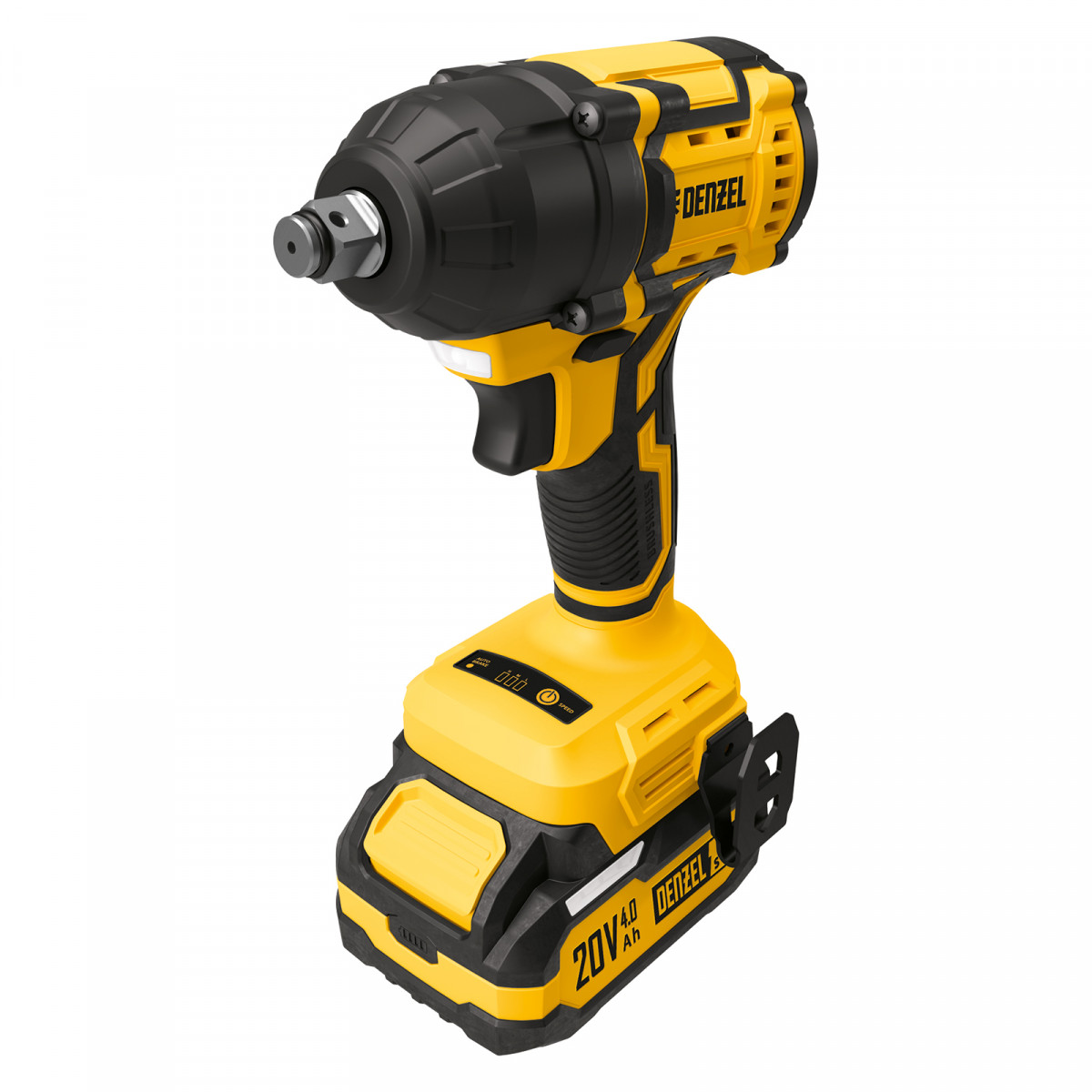 - Универсальность — аккумулятор Li-Ion емкостью 4 А·ч совместим со всеми инструментами единой платформы Denzel Power System 20V.