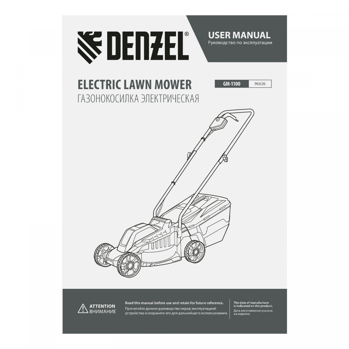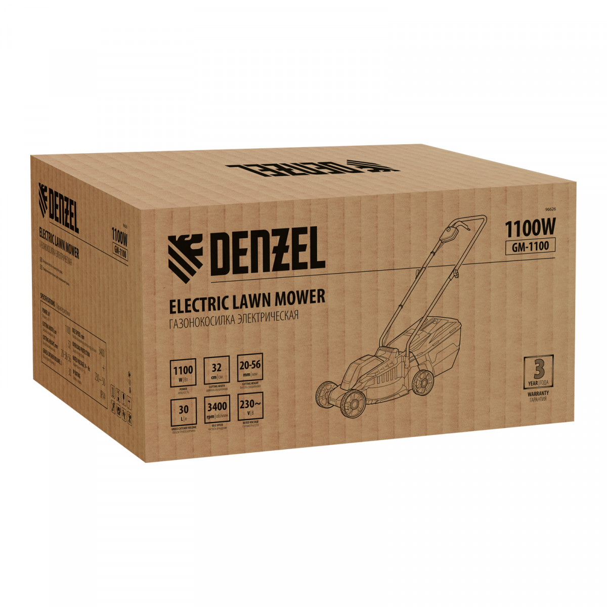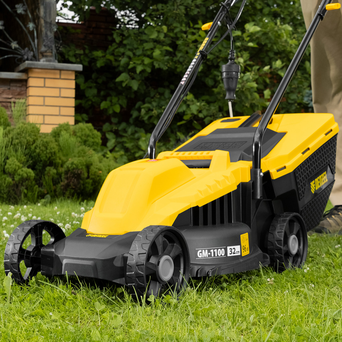 Газонокосилка электрическая GM-1100, 1100 Вт, шир. 32 см, 3 уров., травосб. 30 л Denzel