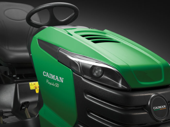 Газонокосильные машины Caiman Rapido SD оборудованы инновационной декой с боковым выбросом, дальность которого регулируется в двух положениях. При создании деки инженеры применили передовую технологию увеличения аэродинамического потока за счет особенности конструкции, что позволило значительно увеличить производительность работы и повысить качество стрижки.
