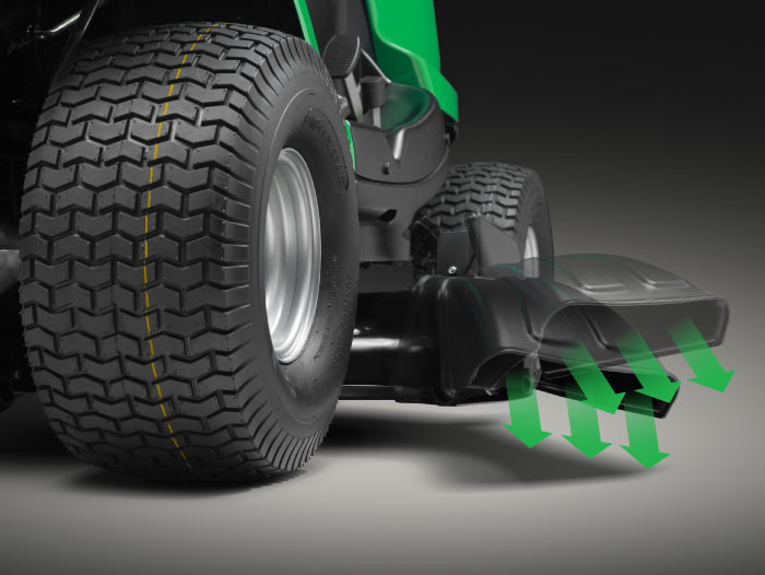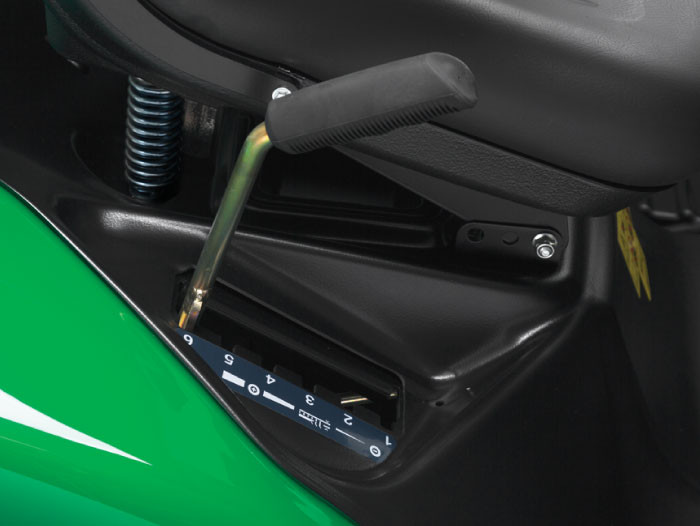 Для повышения вашего комфорта конструкторы уделили особое внимание эргономике. Все органы управления удобно размещены на передней панели: счетчик моточасов, рычаг плавного изменения скорости, включение привода деки и системы освещения. Стояночный тормоз приводится в действие простым нажатием на кнопку.