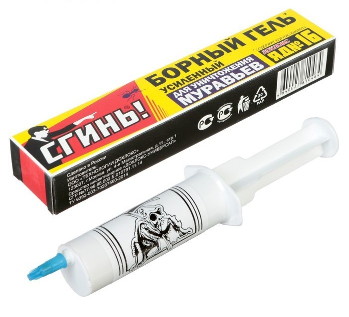Гель от муравьев, действующее вещество: диазинон 0,5%, борная кислота 10%