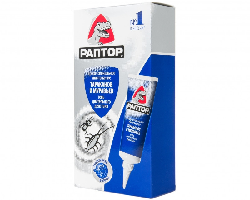 Гель обеспечивает быстрое действие и продолжительный эффект. Раптор от тараканов и муравьев - надежное и эффективное средство избавления от насекомых. Оптимальная формула, современные действующие вещества, лучшие ингридиенты - гарантия высокой эффуктивности и надежности. Гель абсолютно прозрачный. Уникальная консистенция геля Раптор позволяет ему долгое время удерживать влагу, что привлекает насекомых. Для более активного привлечения насекомых используется натуральный экстракт абрикоса. После высыхания не оставляет следов на поверхности и легко удаляется с любой поверхности. Длинный носик геля.