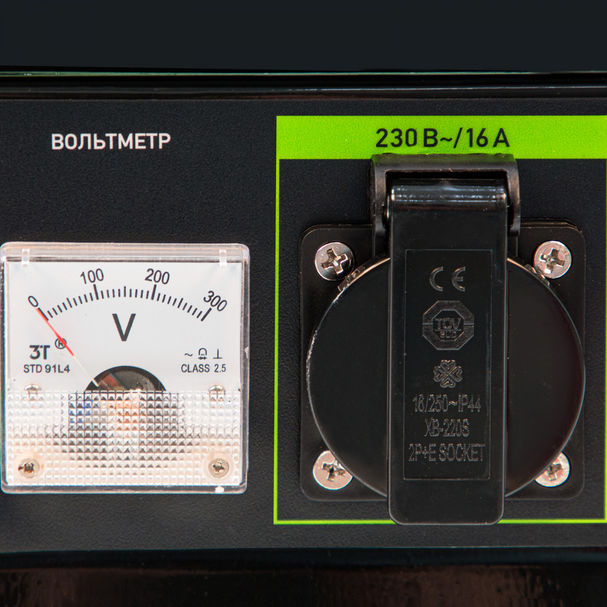• Контроль рабочих параметров — встроенный вольтметр позволяет отслеживать напряжение в сети, а топливный индикатор — уровень бензина в баке.