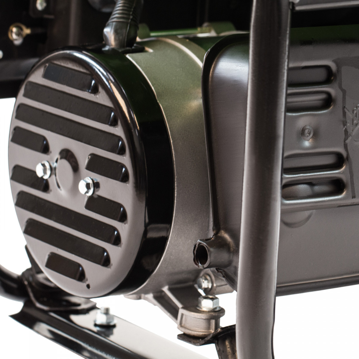 • Прочная конструкция — стальная рама защищает генератор от повреждений, а ее верхние элементы можно использовать как ручки для транспортировки.