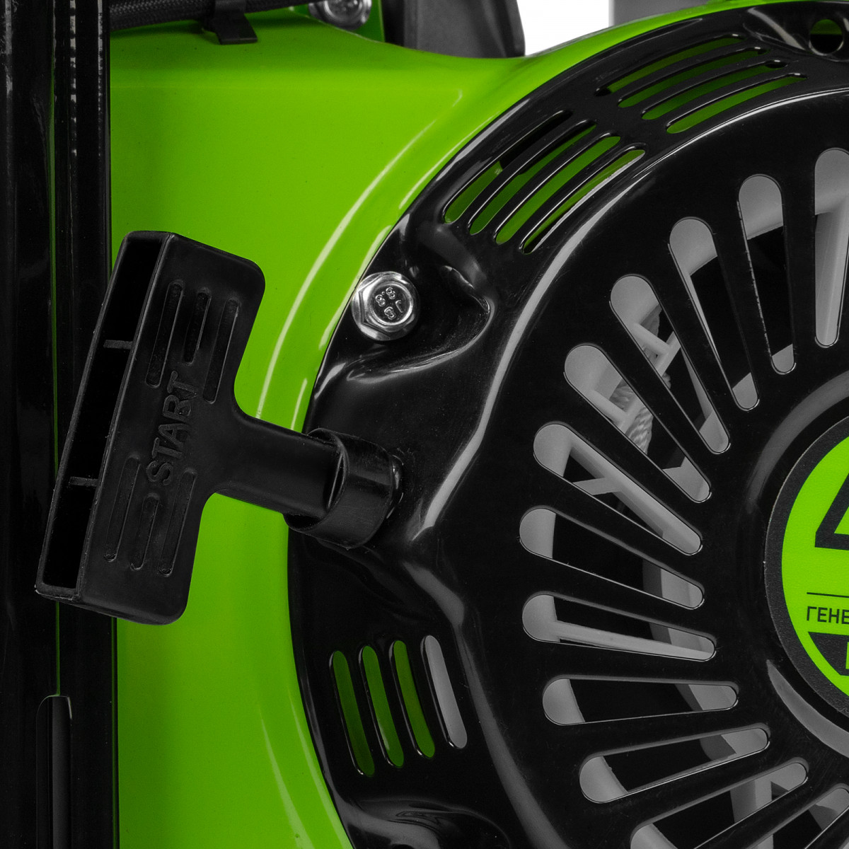 - Ручной старт — генератор легко запустится даже после долгого простоя и в случае разрядки аккумулятора.