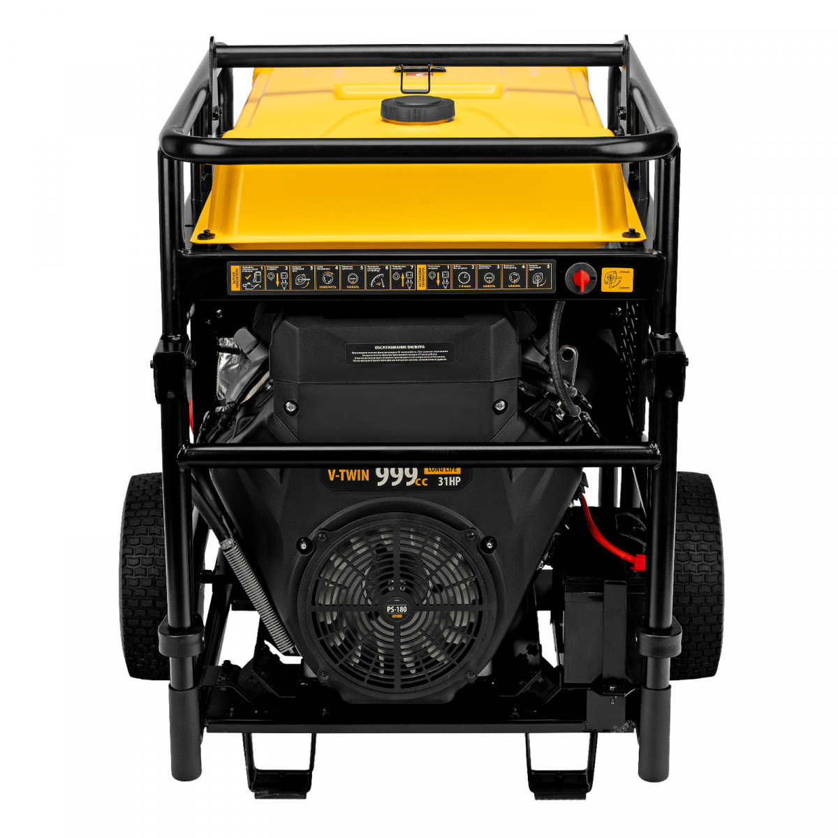 - Мобильность — колеса и ручки упрощают перемещение генератора по рабочей площадке.