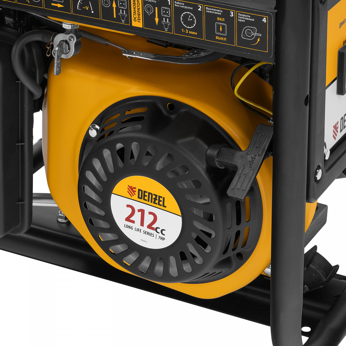 Бензиновый генератор Denzel PS 28 946824 мощностью 2,8 кВт с ручным стартером отлично подойдет для дачного участка, строительной площадки, домашней мастерской, кемпинга, рыбалки. Позволяет одновременно подключать несколько приборов, например, электрочайник, холодильник и 3 лампы дневного освещения. Благодаря увеличенному бензобаку на 15 л устройство будет работать более 12 часов без дозаправки. Экономичный и надежный четырехтактный двигатель мощностью 7 л.с. снижает выхлопы, расход топлива и уровень шума.