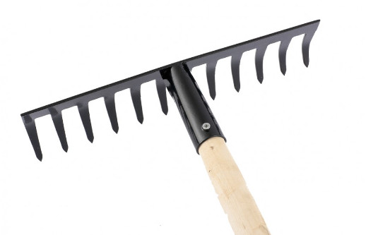Стальные грабли с 12 прямыми зубьями, предназначены для садово-огородных работ. Они используются для выравнивания грядок и рыхления грунта. 12 заостренных на концах зубьев облегчают решение поставленных задач. Грабли поставляются в сборе с деревянным черенком.