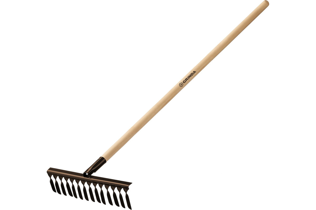 Грабли 14-витых зубьев 444х95х1300 мм садовые с деревянным черенком GRINDA
