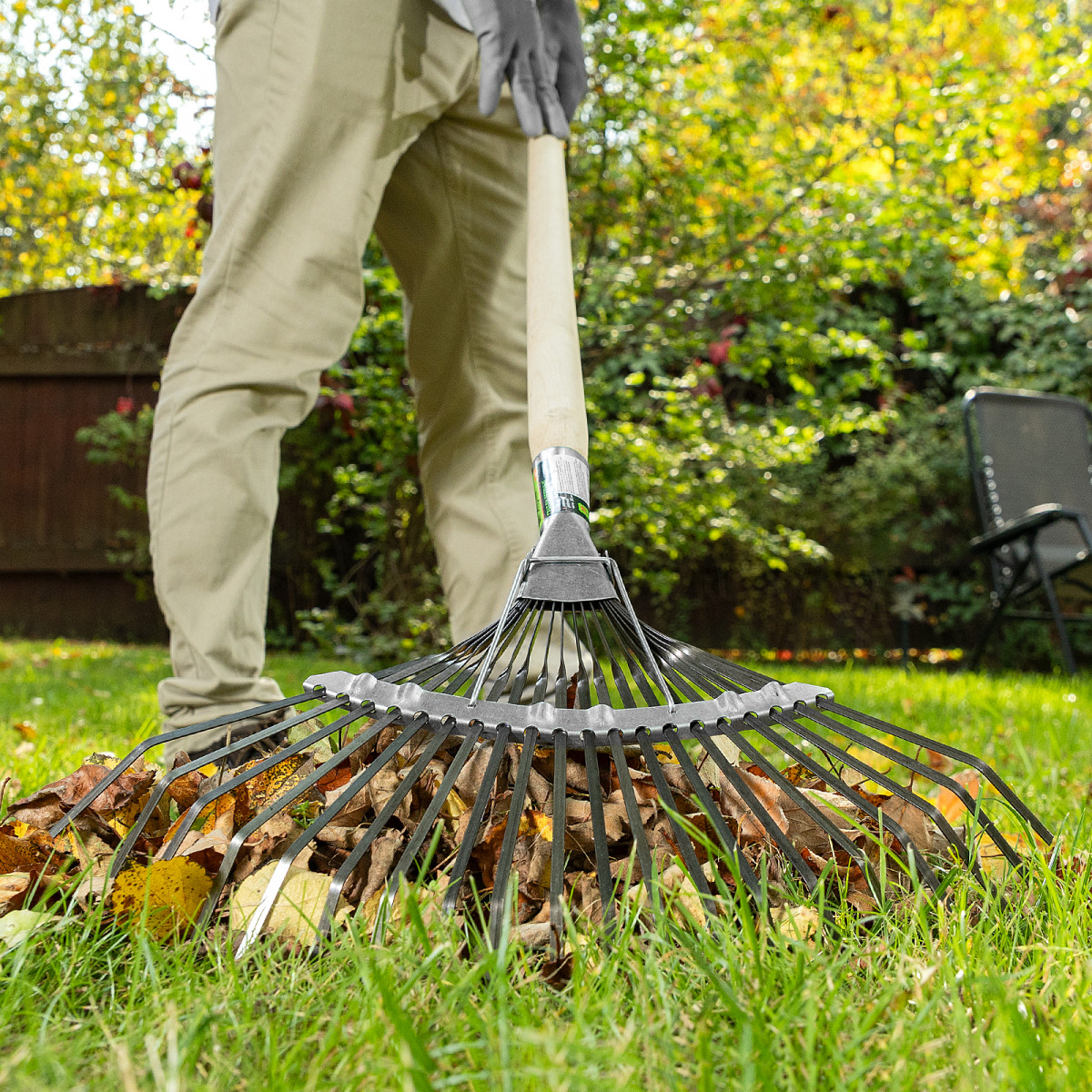 Грабли веерные стальные, 385 х 1450 мм, 20 плоских зубьев, деревянный черенок, Сибртех