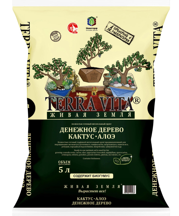 Грунт Живая Земля Денежное дерево Кактус Алоэ 5л