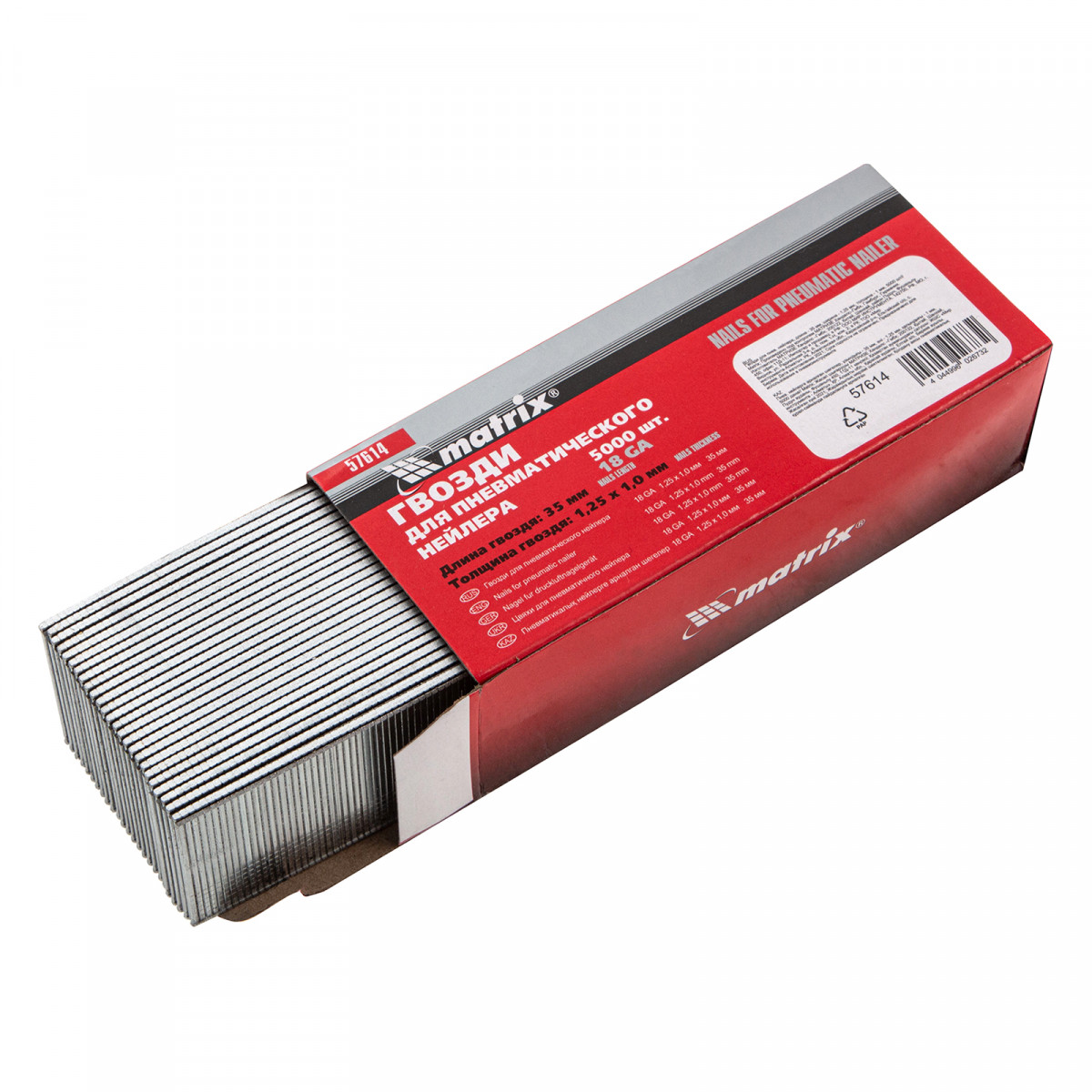 Гвозди для пневматического нейлера, длина 35 мм, ширина 1.25 мм, толщина 1 мм, 5000 шт Matrix
