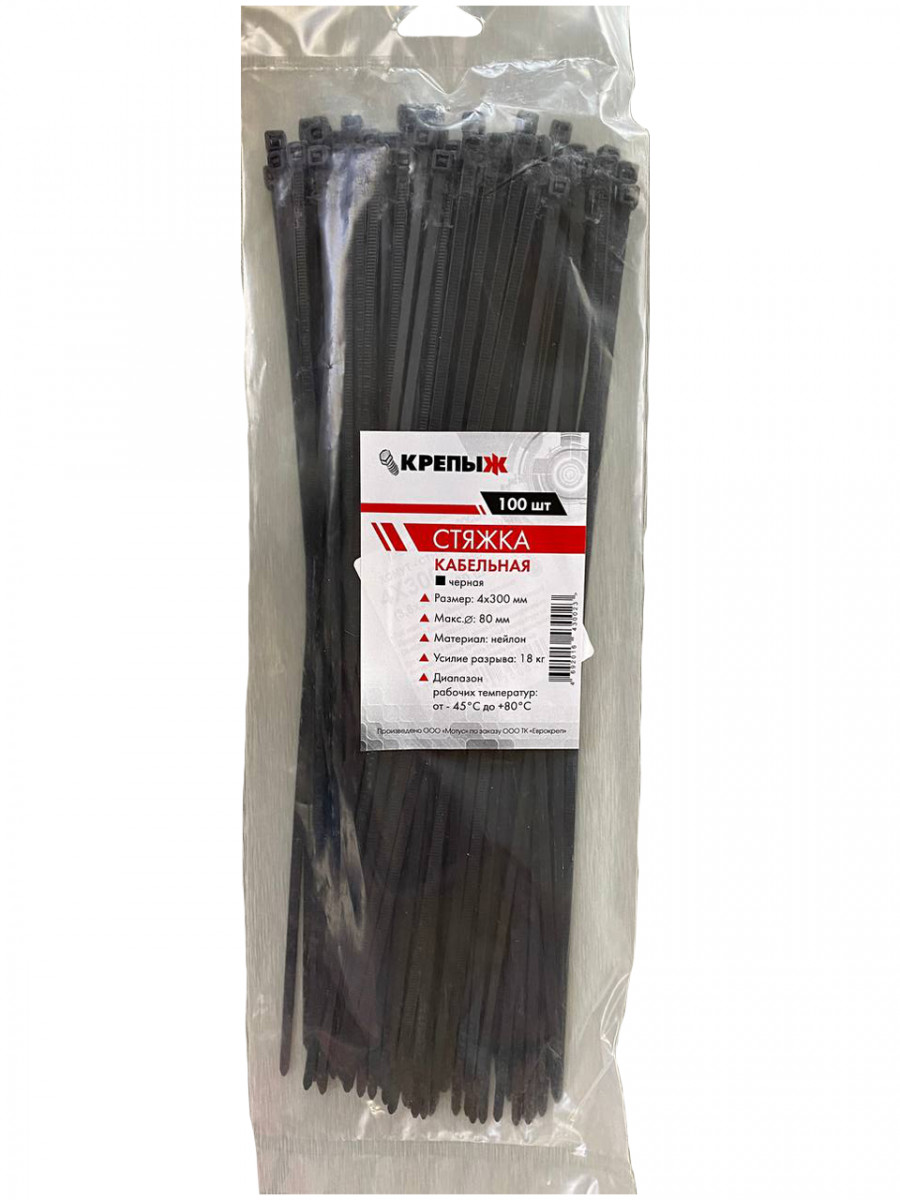 Хомут нейлоновый 4*300 мм черный КРЕПЫЖ (100шт)