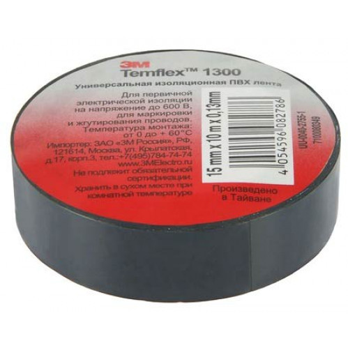 Изолента ПВХ TEMFLEX черная 10м*15мм