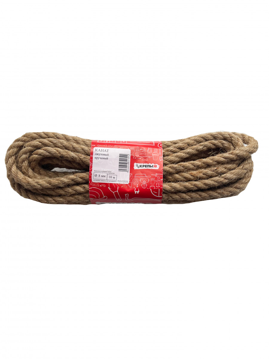 Канат джутовый кручёный 8 мм 10м КРЕПЫЖ