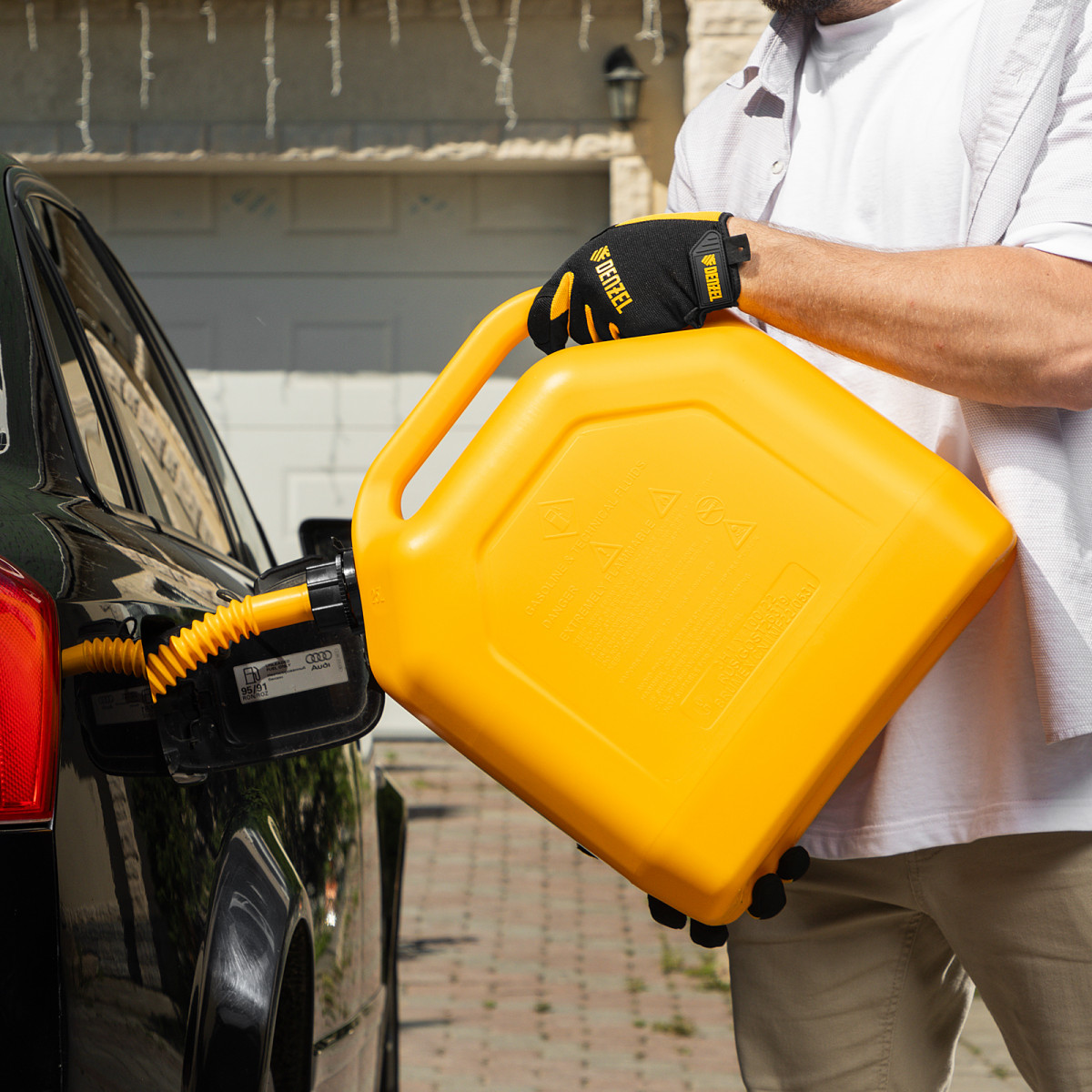 - Полупрозрачный корпус — можно отслеживать уровень заполнения канистры.