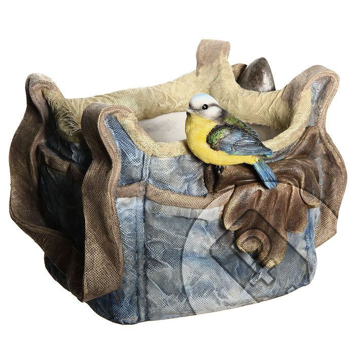 Кашпо Сумка джинсовая с птичкой