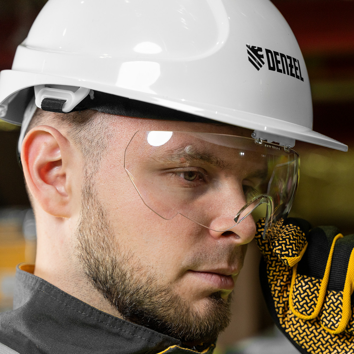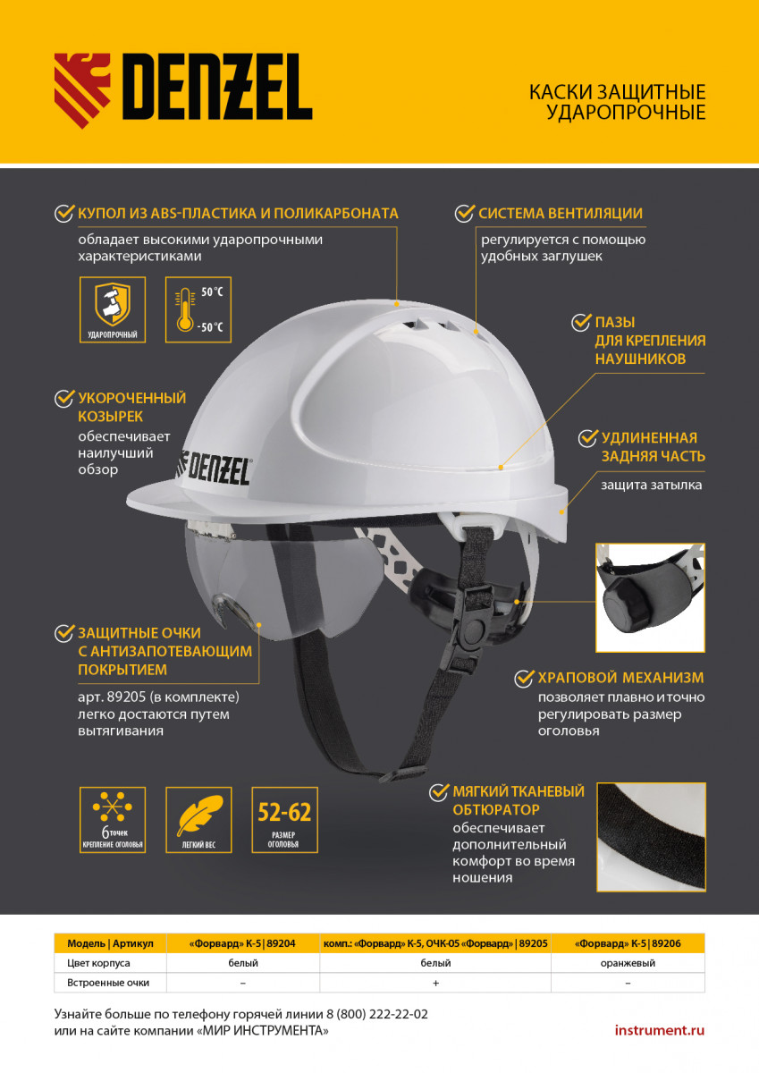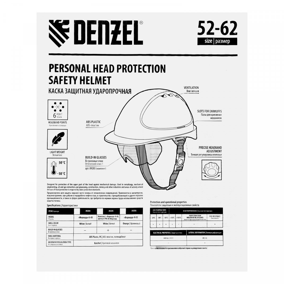 Каска защитная ударопр.«Форвард» (К-05)ABS/PC,комплект со встроен.очк.ОЧК-05 Форвард,белая Denzel