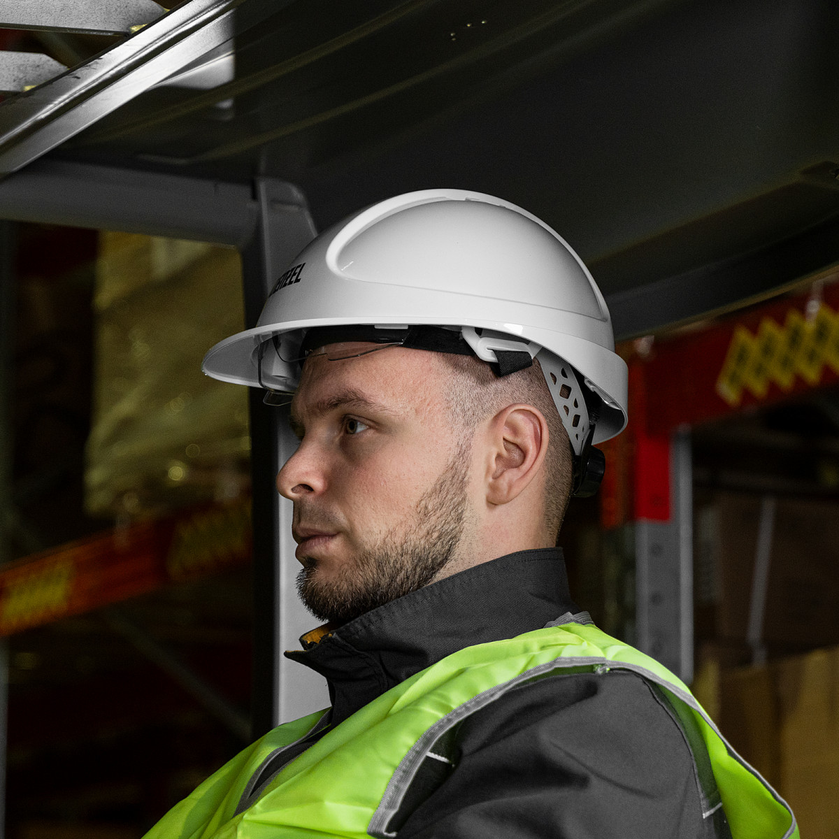 • Удобная посадка — наголовное крепление с храповиком позволяет плавно подгонять и точно регулировать размер оголовья от 52 до 62 см, каска комфортно прилегает к затылочной части головы за счет мягкой эластичной вставки.