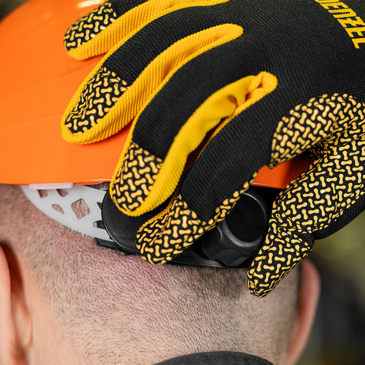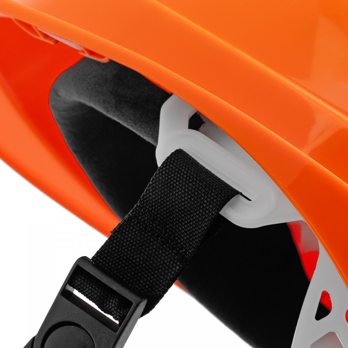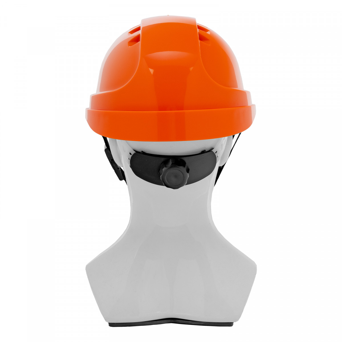 • Удобная посадка — наголовное крепление с храповиком позволяет плавно подгонять и точно регулировать размер оголовья от 52 до 62 см, каска комфортно прилегает к затылочной части головы за счет мягкой эластичной вставки.
