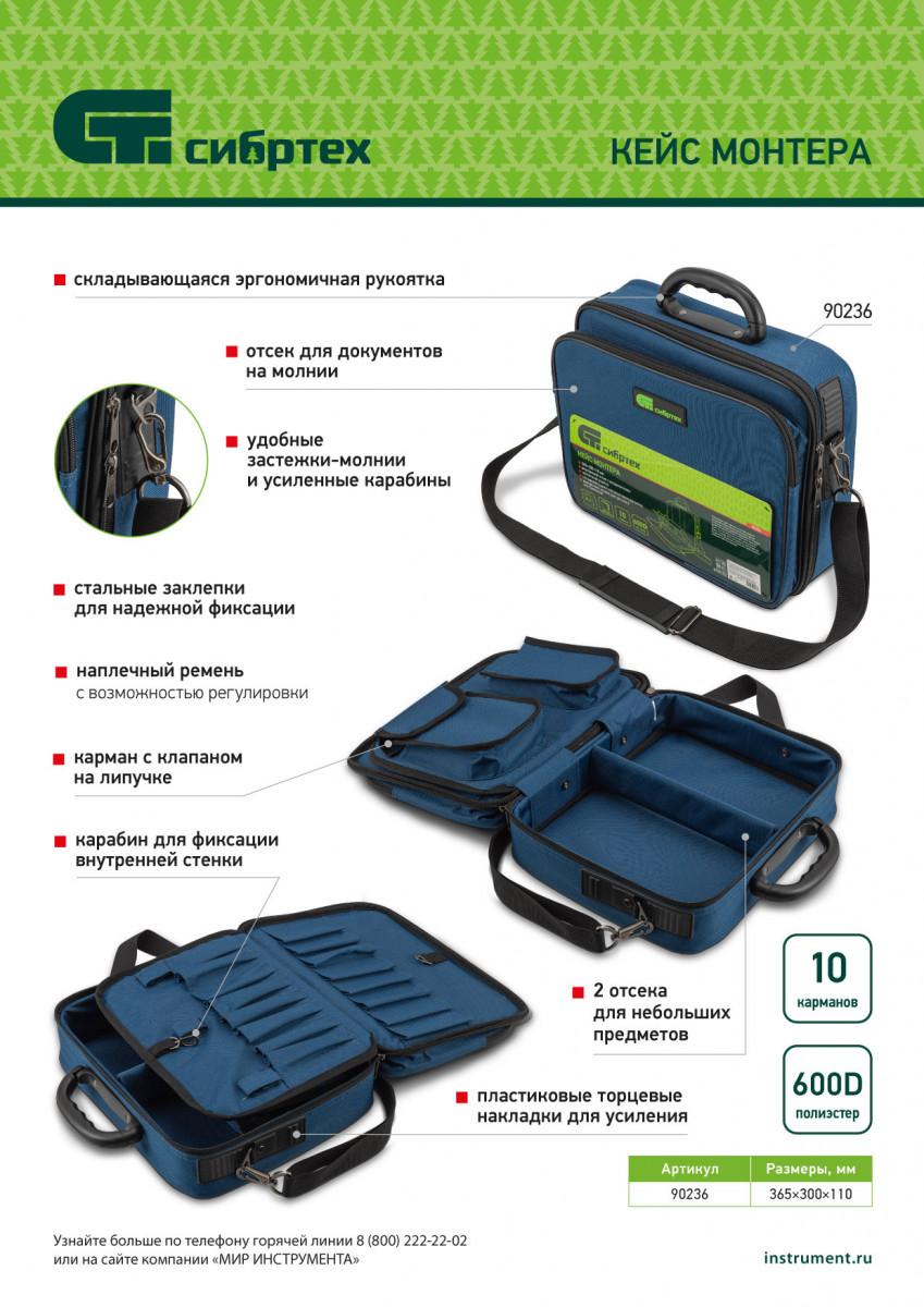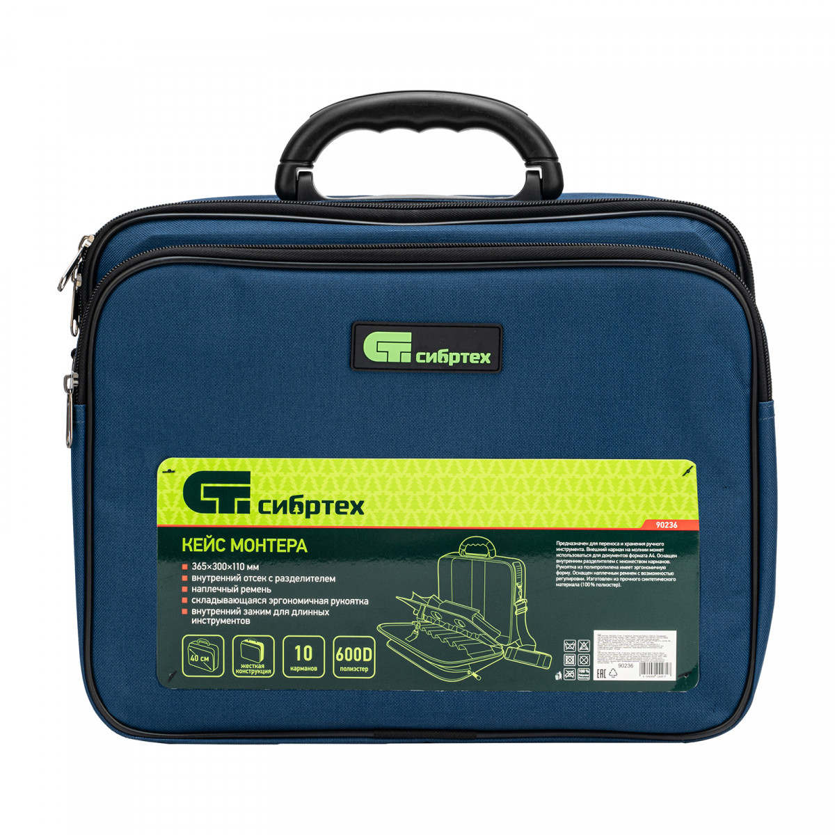 Кейс монтера, 365х300х110 мм, 10 карманов, наплечный ремень Сибртех