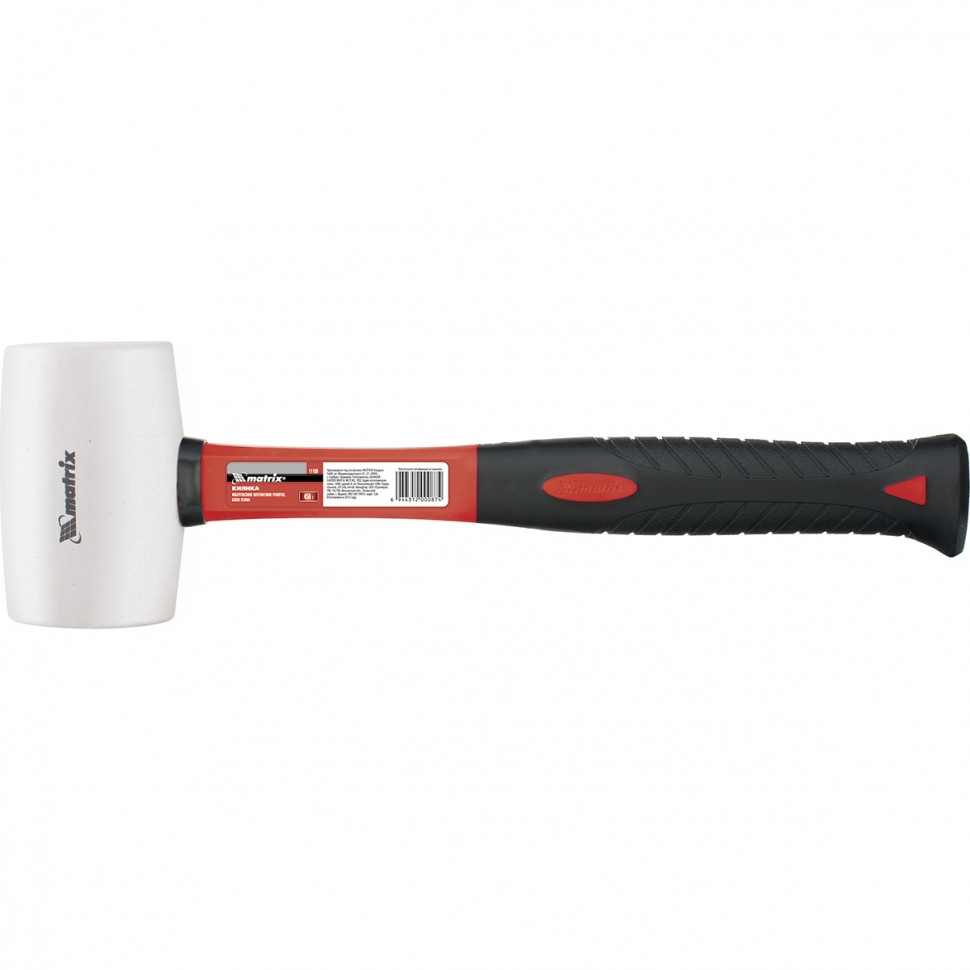 Имеет головку с бойками из черной и белой, не оставляющей следов на светлой поверхности, резины. Фибергласовая рукоятка обрезинена, что предотвращает проскальзывание в руке, обладает высокой механической прочностью.