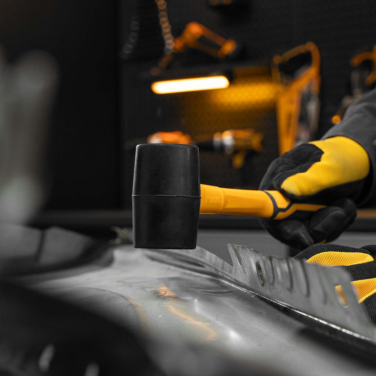 Киянка резиновая, 225 г, черная, фибергласовая рукоятка c TPR покрытием Denzel