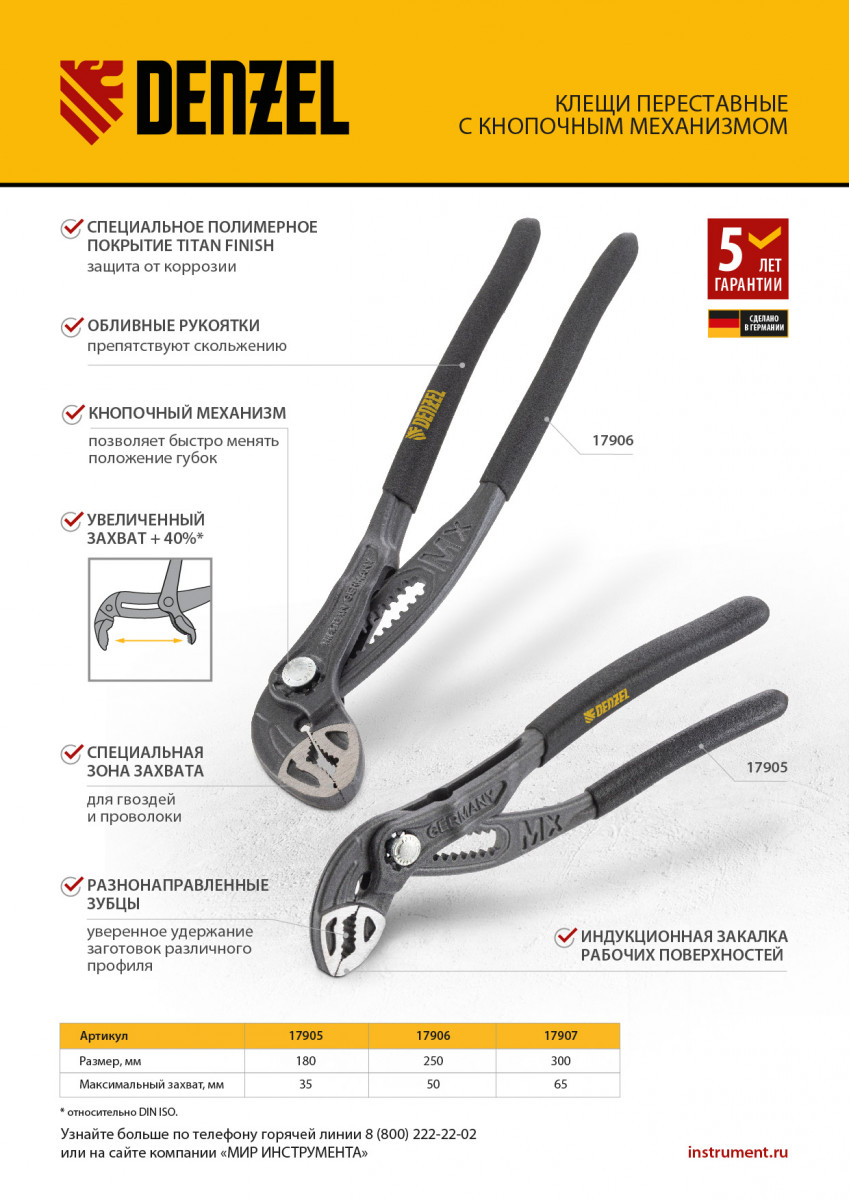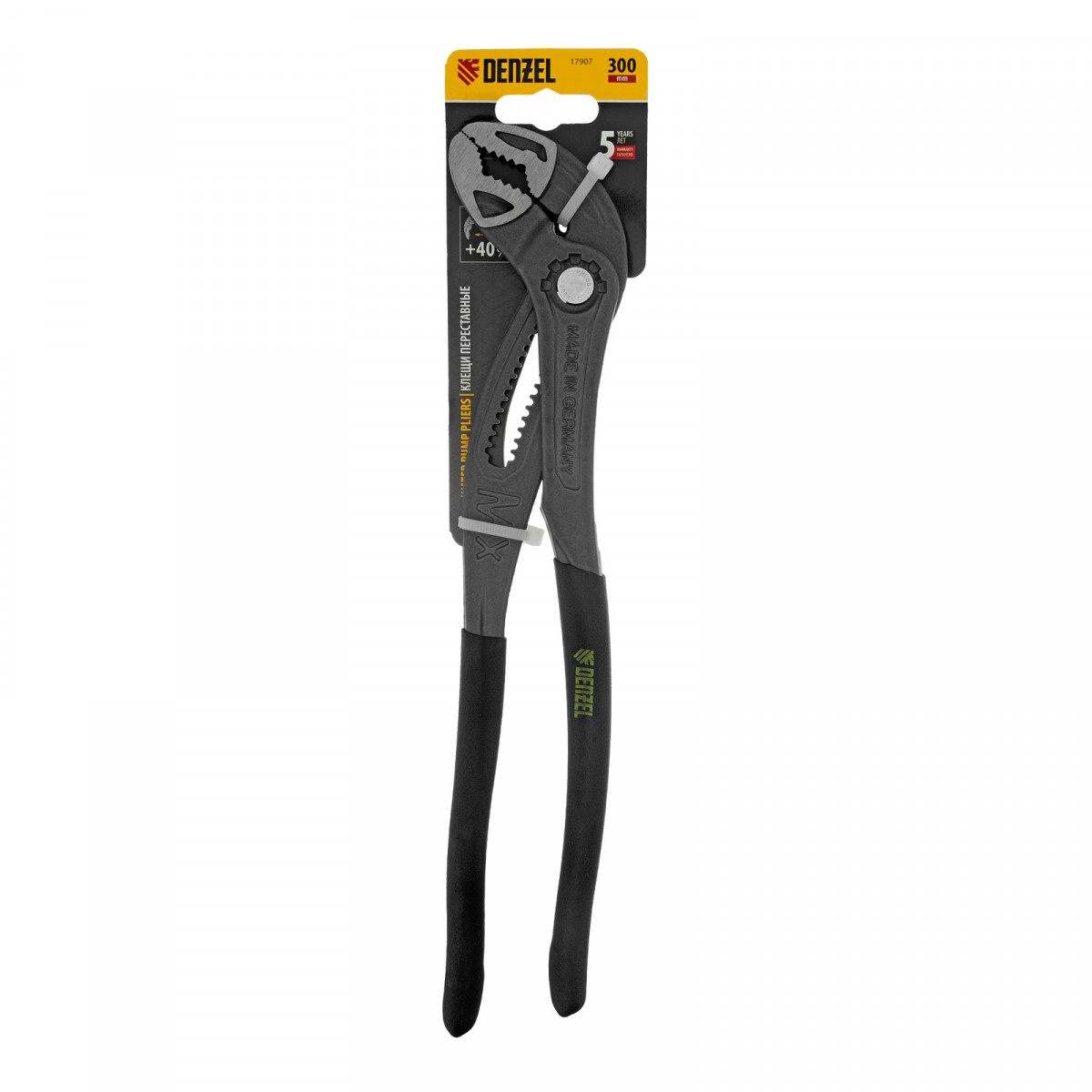 Клещи переставные, кнопочный механизм, обливные рукоятки, 300 мм Denzel