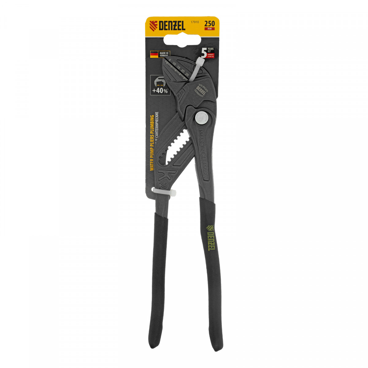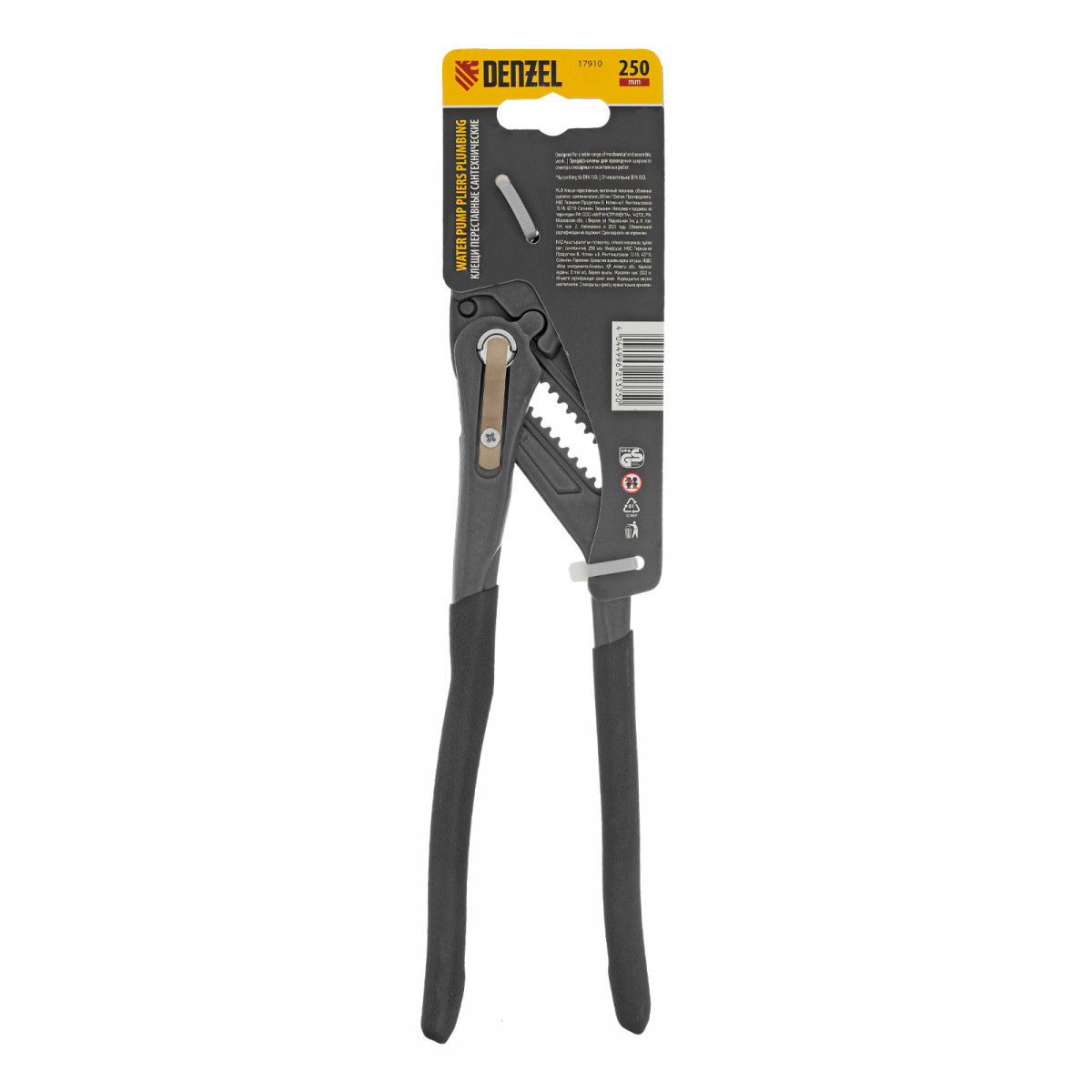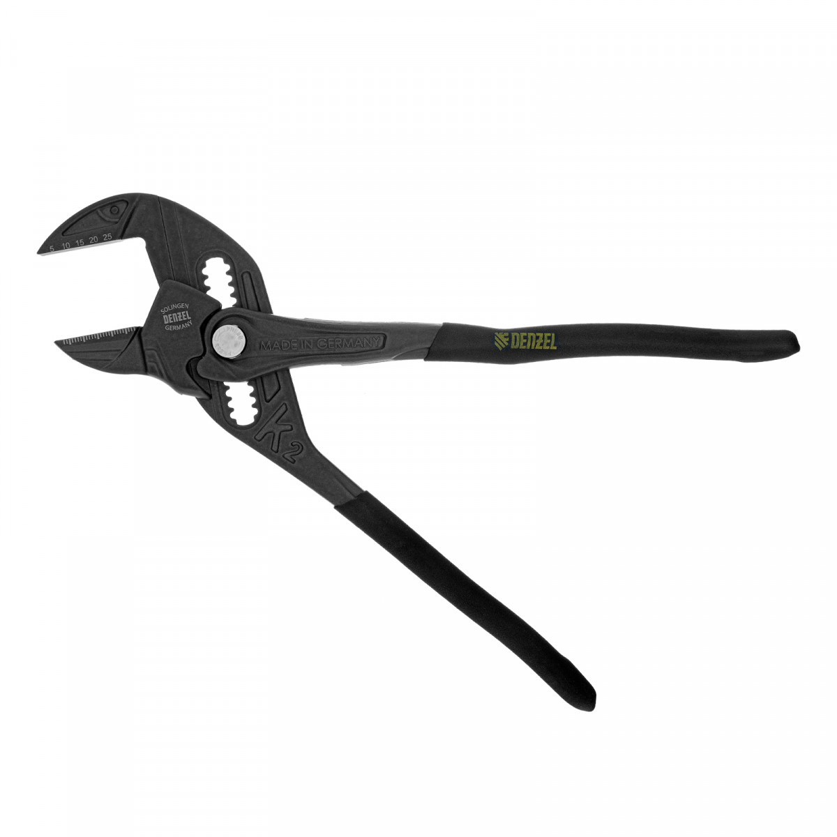 Клещи переставные, кнопочный механизм, обливные рукоятки, сантехнические, 250 мм Denzel