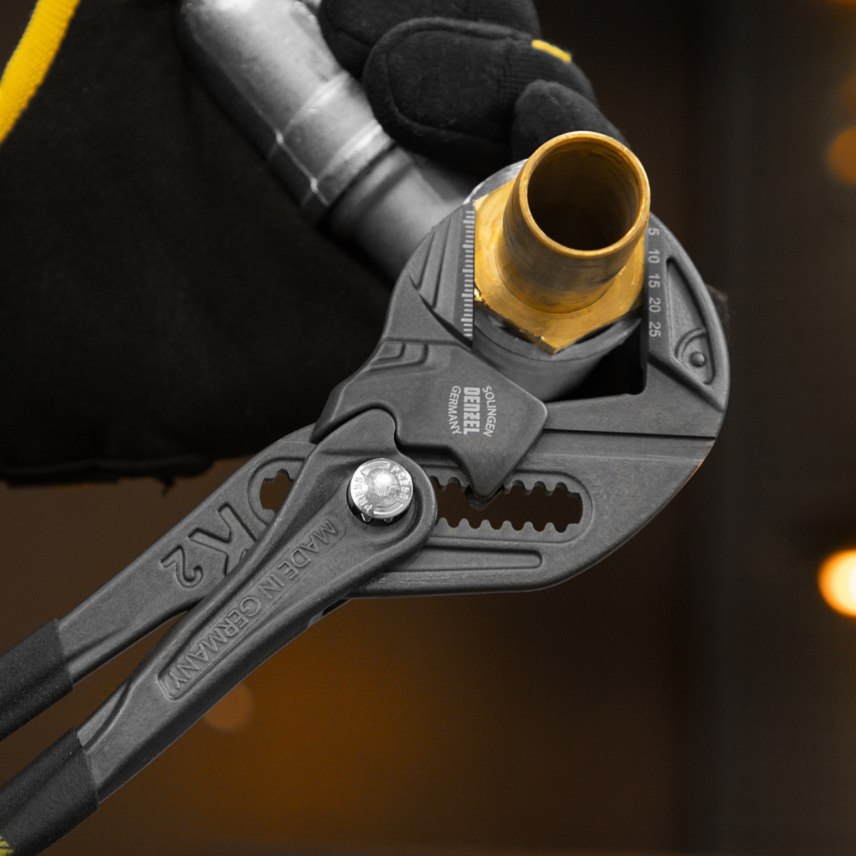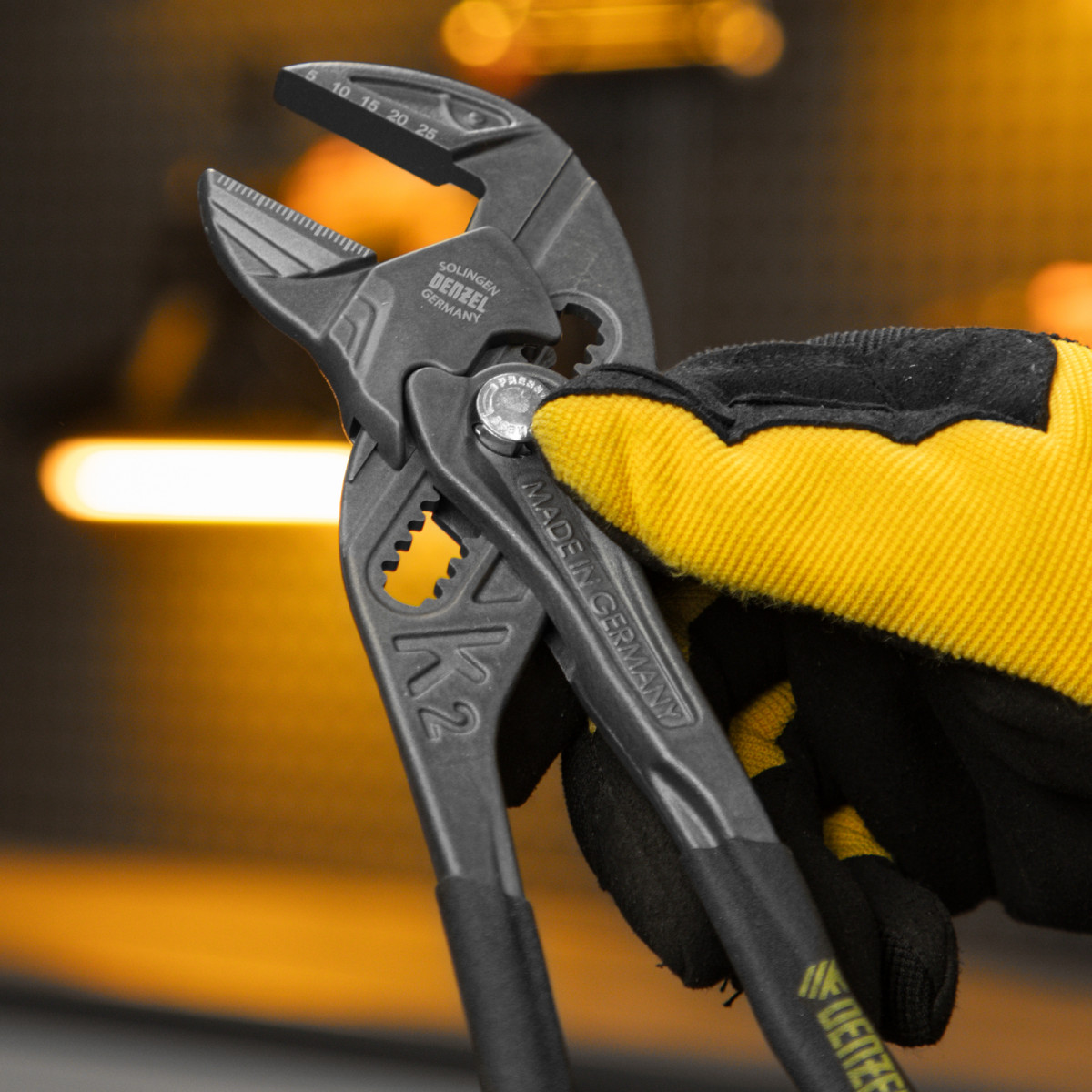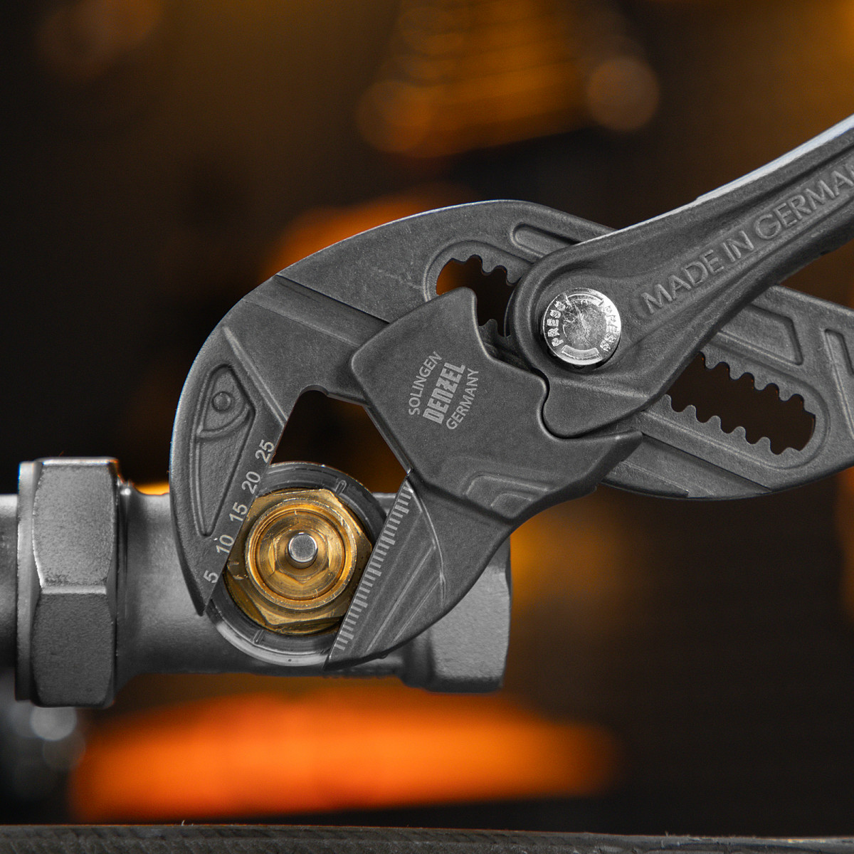 Клещи переставные, кнопочный механизм, обливные рукоятки, сантехнические, 250 мм Denzel